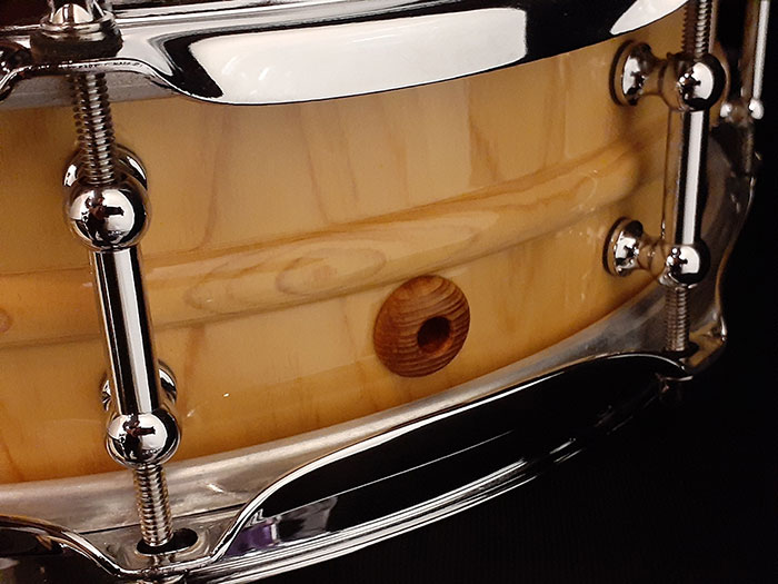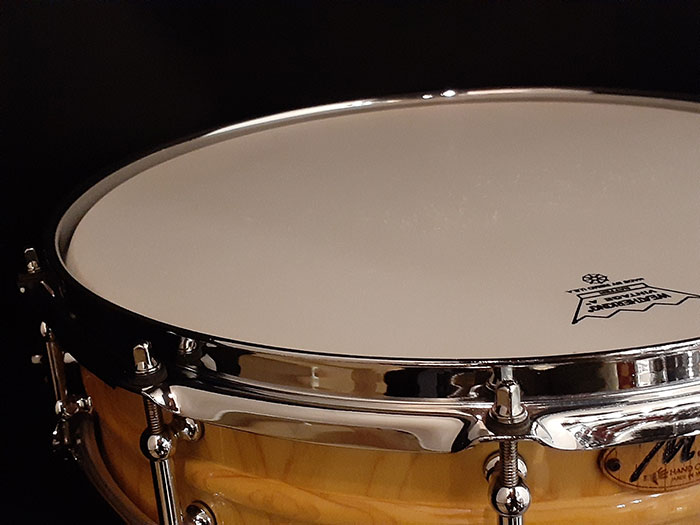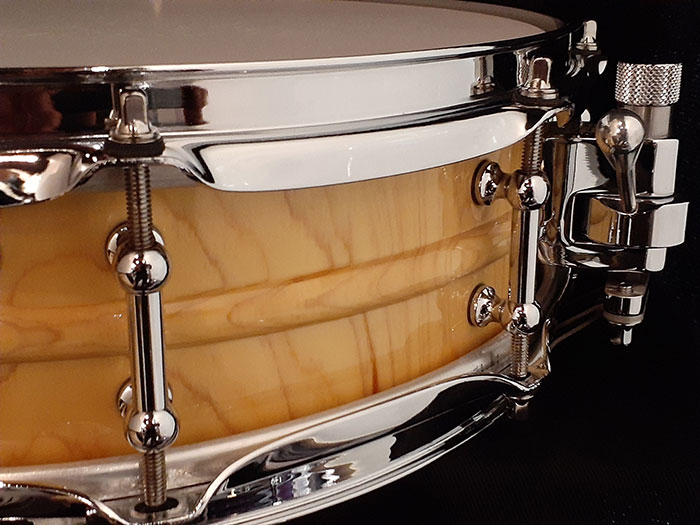 すべてくり抜きの単板(1プライ)スネアです。材の乾燥期間等含めてかなりの日数を費やして製作されました。