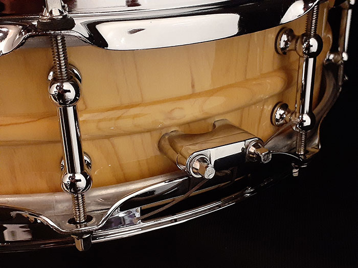 通常のくり抜きスネアに比べて、伝達率が早くセンシティブに反応してくれます。
