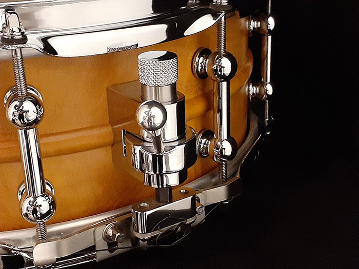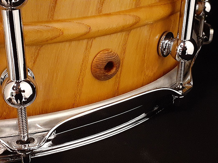 ケヤキくり抜き単板シェルの鳴りを最大限に引き出す為に、ラグはチューブラグ。