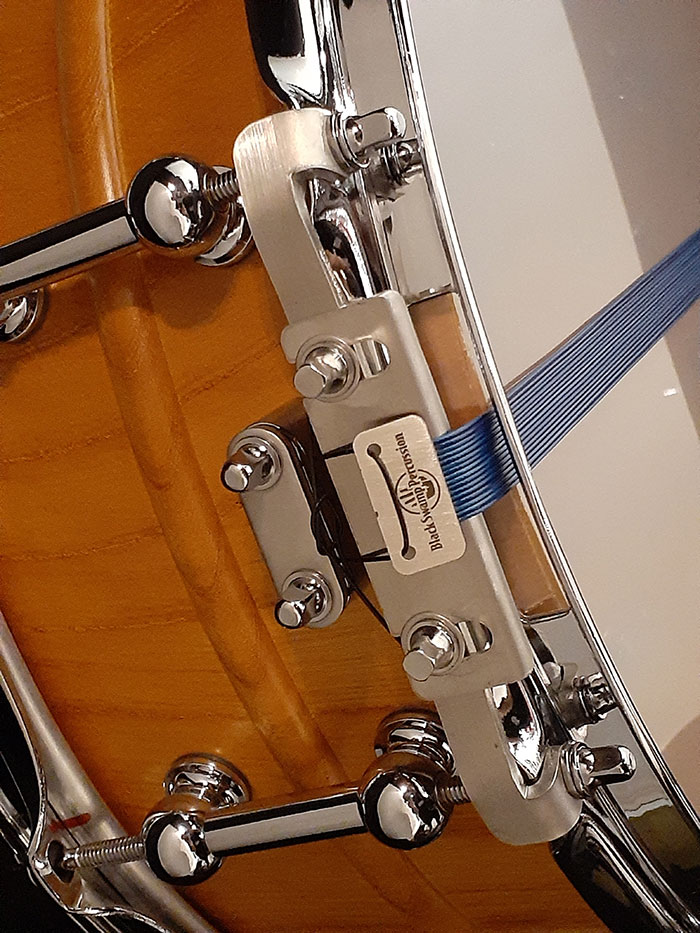 Snappy Just Fit Barで横方向にテンションをかけて高さ調節する事により、スナッピーの密着度を調整可能でスナッピーエンドの金属プレートでボトムヘッドをミュートする事なく自然なスナッピーの反応を得る事が可能となります。