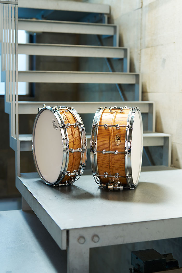 すべてくり抜きの単板(1プライ)スネアです。材の乾燥期間等含めてかなりの日数を費やして製作されました。