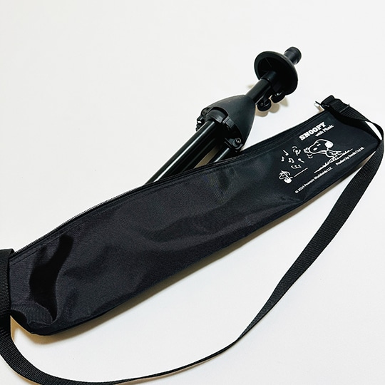 幅広面は出し入れがしやすいファスナージップ式で、丈夫なナイロン製で肩にかけて持ち歩ける譜面台バッグです。