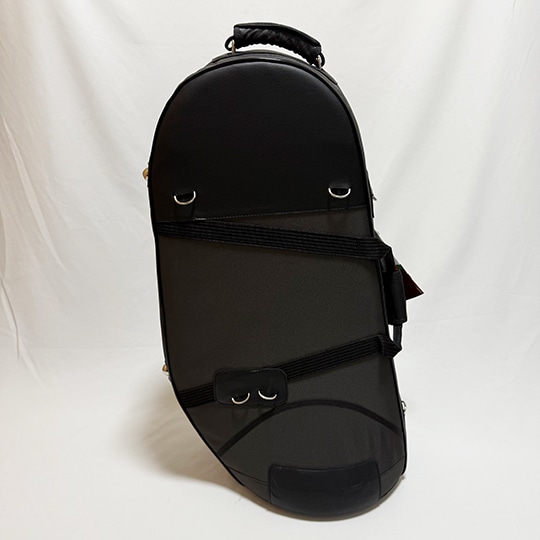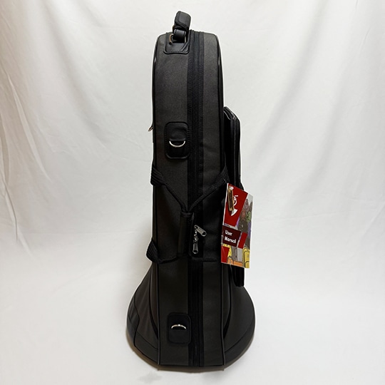 内側は楽器を固定するためのベルトや、ちょっとした小物を入れることができる仕切りやマウスピースポーチも付属しており、外側には楽譜などが収納できるポケットもついているので、楽譜や小物なども一緒に持ち運ぶことができます。