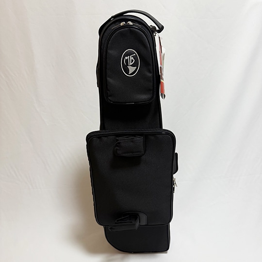 外側には譜面台または楽器スタンドを取り付けることができる着脱式の譜面バッグや、小物入れポケットがあり、中にはリードパイプポーチやマウスピースポーチも付属し収納も充実しているので、小物類も楽器と一緒に持ち運ぶことができます。