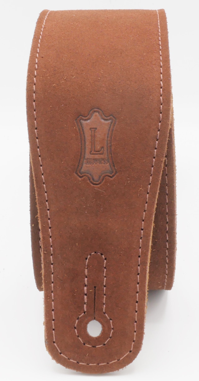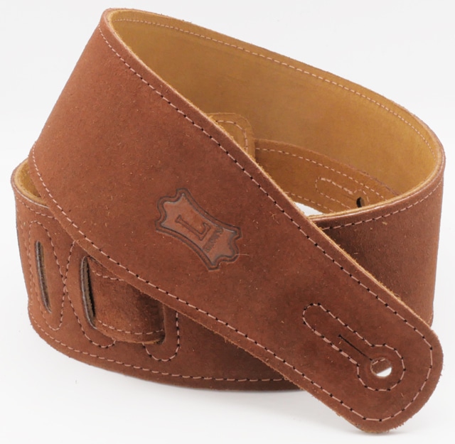 数量限定!定価より50%OFFのお買い得特価品! 「LEVY'S Leathers」の製品で使用されている革は全て”本革”です。なめし(動物の皮を樹液や薬品を使って防腐と強度を与える)作業を行い、生の”皮”から”革”レザーが造られています。その製法の違いによって、カーヴィング、ガーメント、スエードと種類が分かれていきます。 表地、裏地がスエードレザーのベーシックモデル。馴染んだ革の様に柔らかい掛け心地が特徴です。 スエードレザーは床皮を原料とし、表面をバフし(毛羽立て)、ベルベット状の毛羽を持つように起毛加工された革になります。 裏地:スエード サイズ:幅約6.4cm、長さ94cm~1m37cm(スリット式調整)