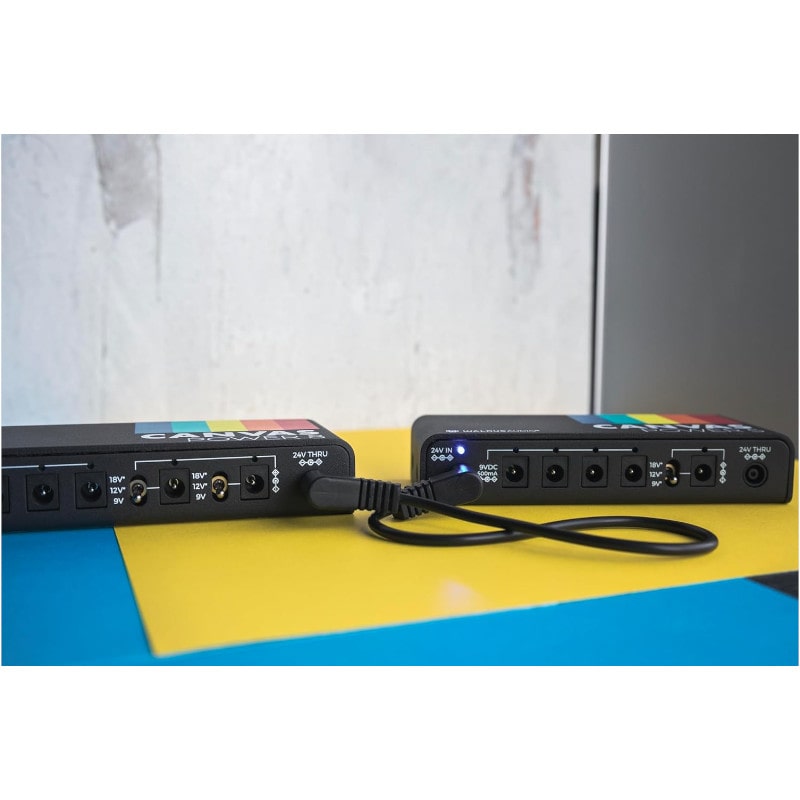 Canvas Power 5 には、9V で500mAのクリーンな電力を供給する 5つの独立した電源出力があります。うち1つは可変電圧で、9V、12V、18V を切り替えて高電圧ペダルに電力を供給できます。