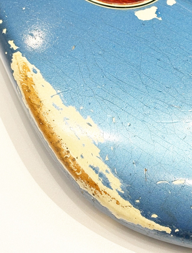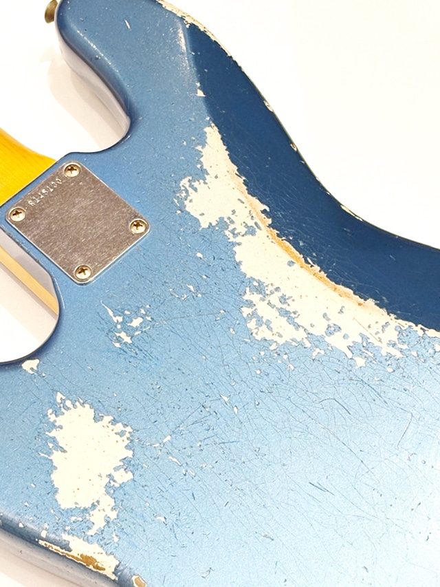 製作頂いたのは、1964年仕様を踏襲したへビーレリック仕上げのジャズベースです。アルダー材ボディ、整った柾目のメイプル材ネック、黒々とした3Aグレードのローズウッド材、文字に記せばスタンダードなウッドマテリアルですが各部マスタービルダーにより厳選された木材が用いられております。ネックはやや肉厚でサウンドにコシの出る”U”シェイプ、指板はラウンド貼りのビンテージラジアス7.25”、この年式ではやや幅広となるVintage Upgrade(45085) フレットがスムースな操作感を生み出します。そして、ピックアップには現ピックアップマスターである”Josefina Campos/ホセフィーナ・カンポス“氏によろハンドワウンドJazzBassモデルが搭載されており極上のFenderディティール備えております。