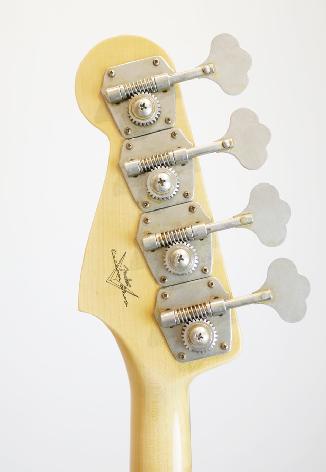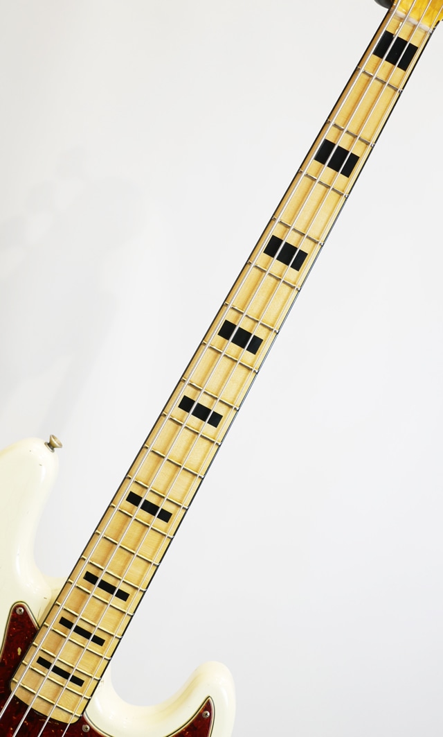 アルダーボディ、張りメイプル指板/メイプルネックのマニアックなスペックに、HW VINT J-BASSピックアップをセットで搭載。指板ラディアスは7.25R、ミディアムジャンボフレットをセレクトしたヴィンテージライクなスペックにて構成されております。貼りメイプル特有の独特のコンプレッション感を感じるサウンドの再現はお見事です。アルダー&メイプルの組み合わせでここまでボトムが出るかと感じさせてくれる芯の太さと艶やかさを持ったサウンドに、メイプル特有の明瞭感も加わり発音の良さも兼ね備えております。フェンダーベースで貼りメイプルを試したくとも出会える機会が少ない状況かと思います。