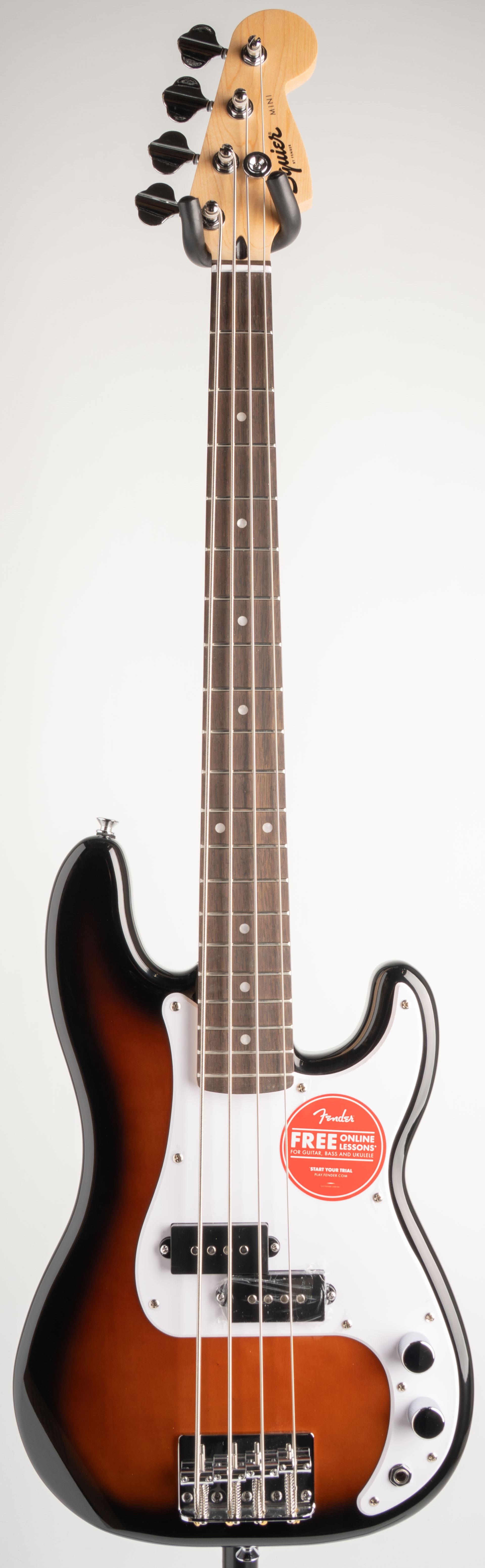 Squier Mini Precision BassはFenderプレシジョンベースのクラシカルなスタイリングとトーンをコンパクトサイズにし、これから楽器を始めてみようと思っている方や小さなお子様の楽器デビューに最適な楽器です。