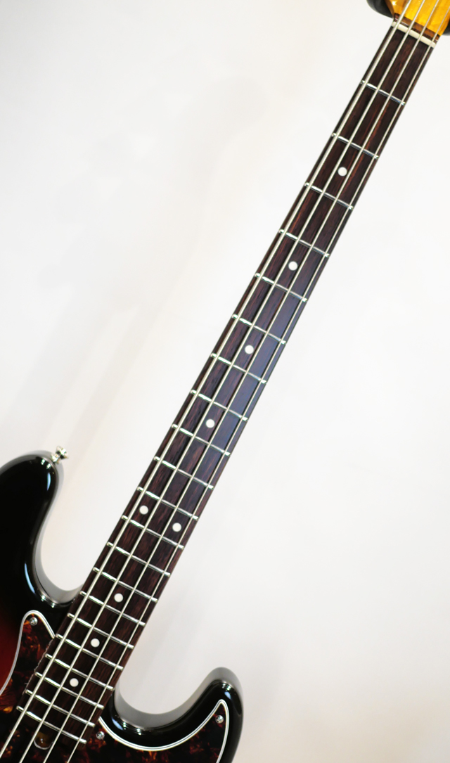 鳴りがしなやかに音の芯が通ったアルダー&ローズ特有のアタック感がJBらしさをしっかりと楽しませてくれます。枯れた音と表現されるしなやかに減衰するサスティーンが心地良く、キレのある細い弦にもしっかりと丸さを帯びた中低域が感じられます。クラシックやビンテージと言われるトーンを感じつつも堅実な中低域や高域を備えておりますのでサウンドメイクは幅広く、モダンからビンテージとイメージするサウンドを作りやすいことと思います。極薄のラッカーならではの塗装の変化もサンバーストは特にお楽しみいただける事でしょう。
