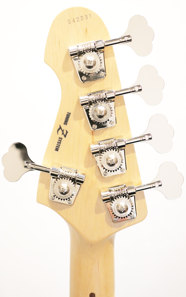 プリアンプはスペクトラムブースト配線仕様の「Bartolini / XTCT」が搭載され、コントロールはマスターボリューム、ピックアップバランサー、マスタートーン、センタークリックで50%ブーストのトレブル&ベースの2EQにカスタム搭載されております。またバックパネルを開けると内部トリマーでミドルブーストも可能です。コントロール部が刷新されたことでサウンドメイクの幅は広がっており、”M#265”の代名詞的なドンシャリサウンドはもちろん、少しウォームでトレブルを抑えたJBサウンドまでが演出できます。