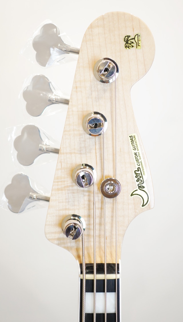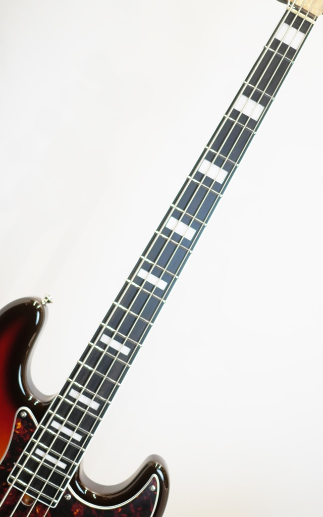 アルダーボディにエボニー指板のコンビネーションにより腰の据わった引き締まった中低域に、ブレないアタック感を備えた力強いサウンドを持った仕上がりとなっております。70年代のJBモデルを彷彿とさせるルックスに違わぬ無骨さが有りながらも、組み込みの精度の高さがしっかりと伝わって来る伸びやかなサスティーンに、タッチレスポンスの良い音の立ち上がりも持ち合わせております。色気のあるJBトーンをしっかり持ったアクティブベースになりますので幅広い活躍が期待できる1本です。