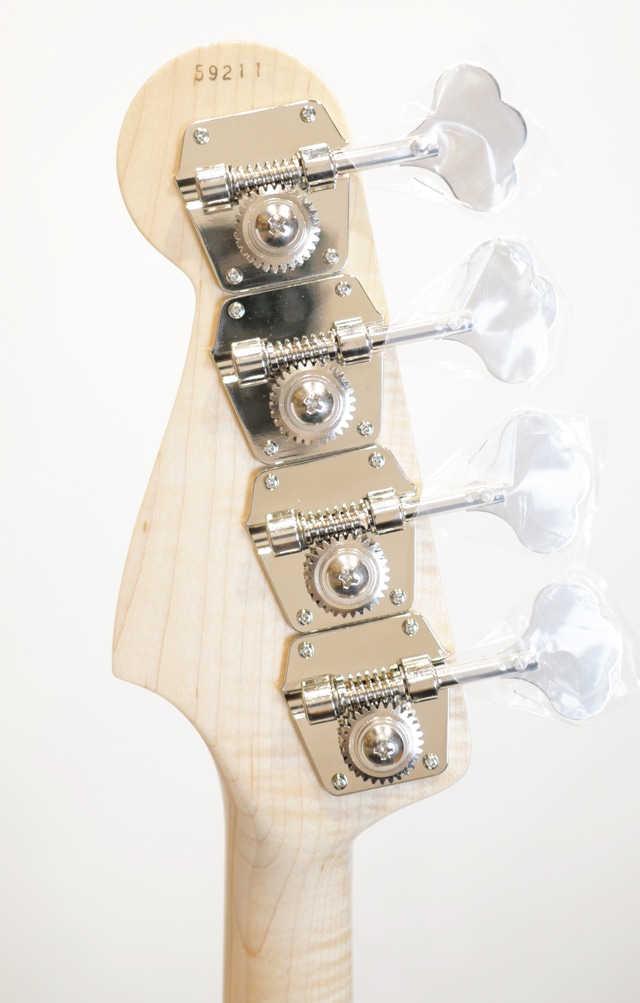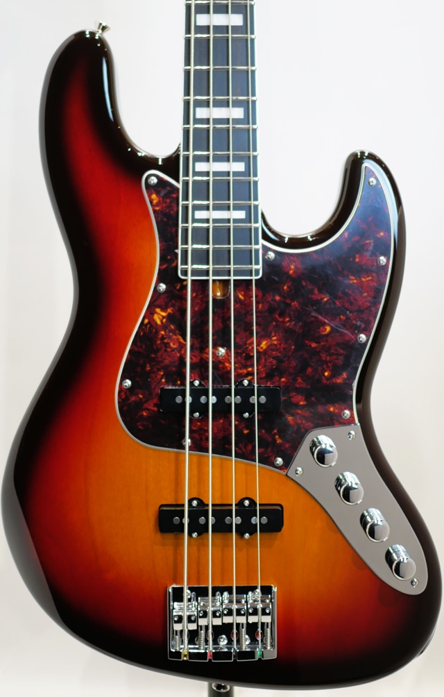 アルダーボディ、メイプルネックにはエボニー指板が採用、特徴的なブロックインレイを配し、Bartolini(バルトリーニ)プリアンプ”XTCT”を搭載したアクティブモデル「JB-4A」です。信頼の高いGOTOH社のパーツを各部に配し、中低域がナチュラル且つ力強いトーンが特徴のオリジナルピックアップを”Oxalis/JB-4”を装備、内蔵プリアンプのBartolini/XTCTはトレブル/ベースをブースト、ミドルはコントロールキャビティ内部に装備されたトリマーでカットが可能です。