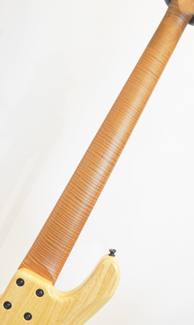 アッシュの特性が色濃くサウンドへとインストールされた明瞭感の強いオープンなサウンドが印象的です。サウンドレンジも広く、手元のEQもしっかり効いてくれますので相性抜群です。剛性の高いローステッド材の恩恵もあり、タイトに引き締まったキレッキレのサウンドはクリスピーな高域を持ちつつ、ボトムレンジの存在感もありと、サウンドメイク次第で多彩なトーンを奏でます。ピッキングへのレスポンスも申し分なく、スピーディな立ち上がりもこの個体の魅力の一つかと思います。アッシュ系のベースをご検討でしたら、是非お試し頂きたい逸品です。