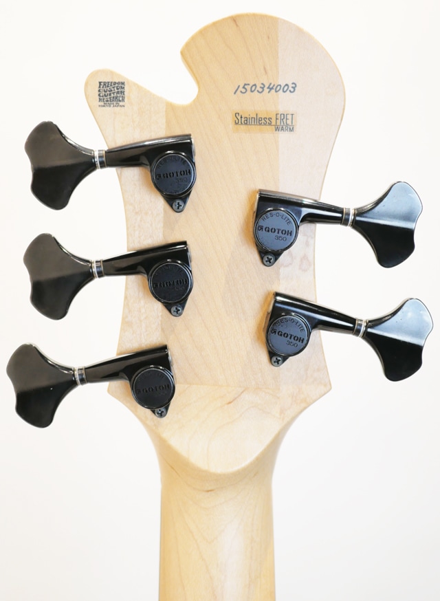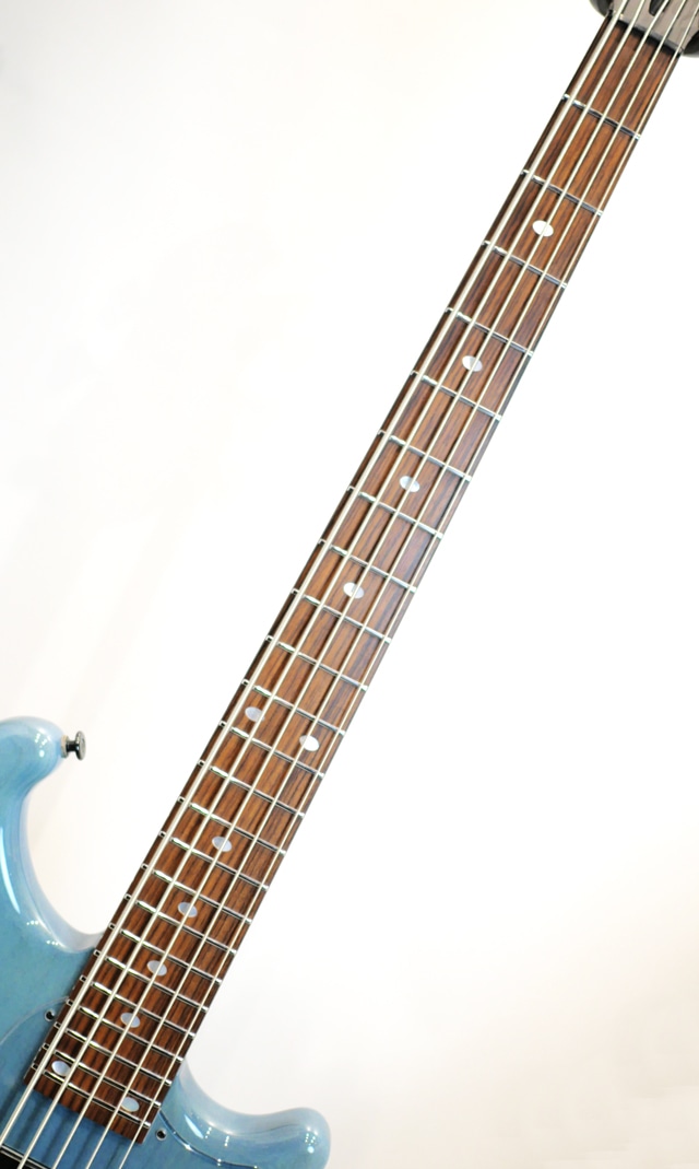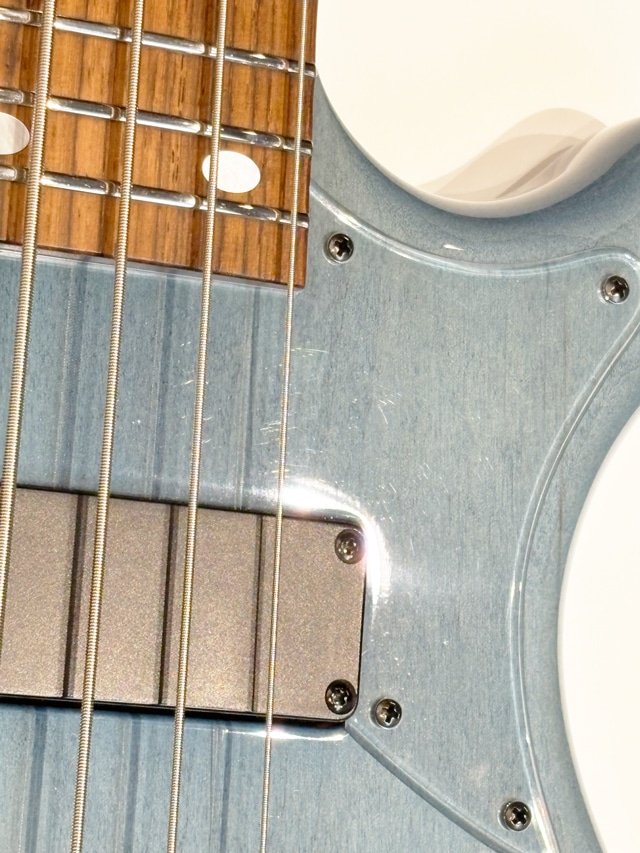基本仕様に、アルダーボディ、ローズウッド指板、クリアピックガード、オリジナルステンレスフレット「09/Warm」、ブラックパーツ、オリジナルカラー”響 - Hibiki -”から「セセラギ(SSR)」がセレクトされております。トラッドなウッドスペックはそのコンセプトに違わぬ、ニュアンスに対して忠実かつ繊細なレスポンス、ワイドレンジで音抜けが良く、アクティヴ回路を搭載したコンパクトボディのベースとは思えないほど豊かなパッシヴサウンドもクリエイトしております。JBやPBのトーンとは異なったハムバッカーピックアップの上質に引き締まった音の芯と心地よい低音域、楽器全体の一体感ある鳴りが弦を弾く度に感じて頂けることでしょう。アクティブ(フラット設定)からパッシブに切り替えた際の音質の差が感じられないのも注目ポイントです。操作性に安定感、馴染み深いのに新しさを感じるサウンド、オールラウンダーと位置付けられたのにも納得の仕上がりを持っております。