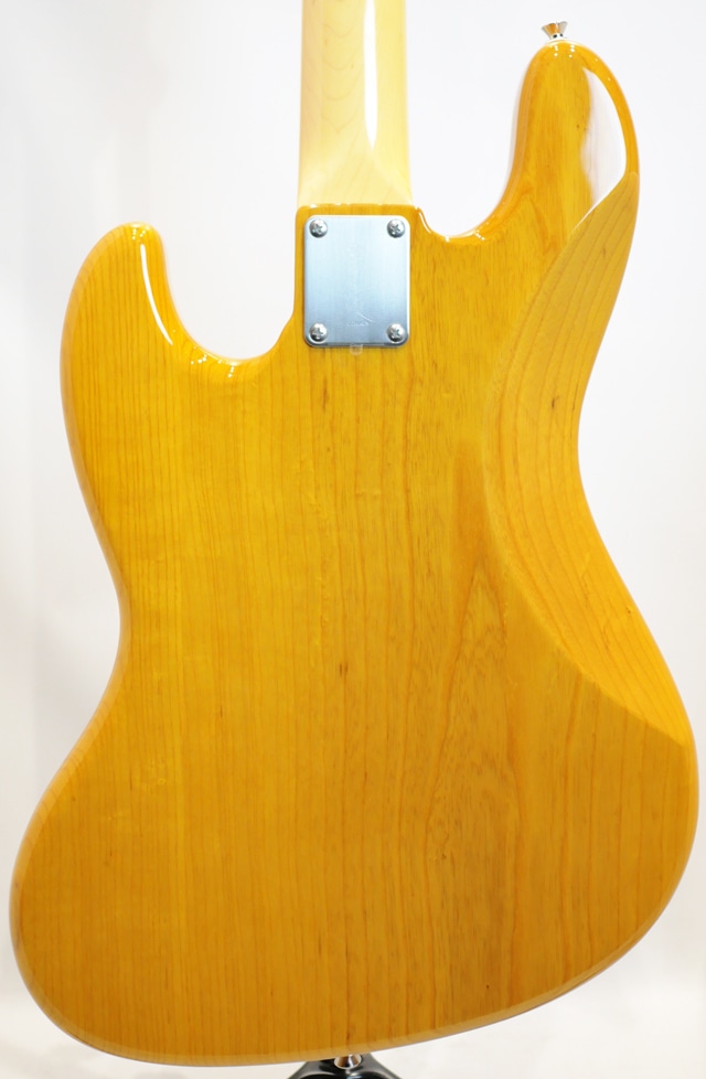 当機はアッシュボディにメイプル指板をスペックに持つ王道の70sスタイルNJBの5弦モデルです。NJB100モデルにて刷新されたエンドアジャスト方式のネックを持ち、今やお馴染みのフジゲン独自のサークル・フレッティング・システムを採用し、フレットを円弧状に打つことで各弦と各フレットが直角に交差し接触面が最小限に抑えられ、クリアかつ立ち上がりの良いサウンドに豊かなサスティーンを実現しています。音の立ち上がり、アタック感に大きく作用するステンレス・ネックジョイント・プレートはプレート固定のスクリューにもステンレスを採用し、彫刻された"富士弦"ロゴが伝統を継承する日本製であることを誇らしく主張します。