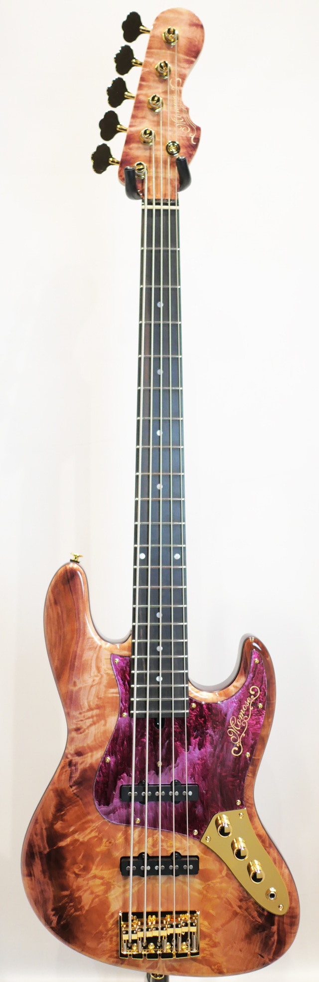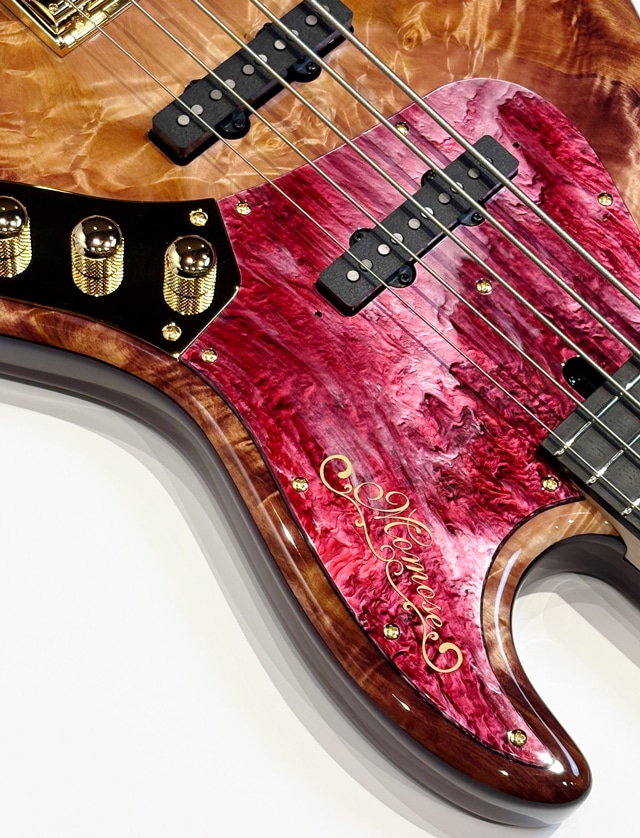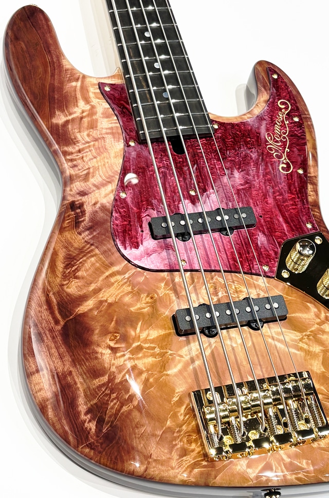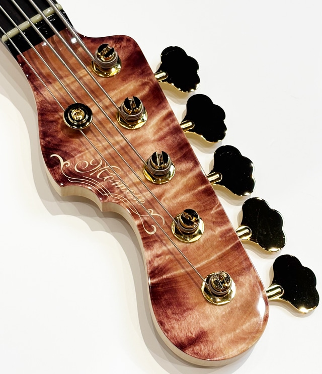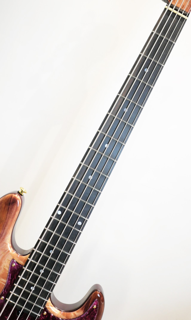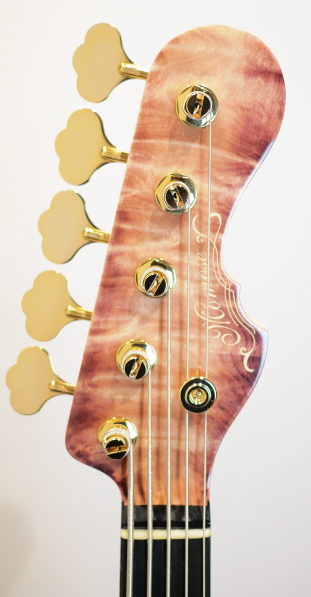 1ピースアッシュのボディは2ピースラミネートよりも少しウェットさを含む落ち着いた印象の深みある特性を持っており、響きに柔和さを感じさせてくれます。エボニー指板を配したメイプルネックが弾力を持たせつつも引き締まった鳴りと音抜けを与えてくれている印象があり、全体的にサスティーンの豊かな伸びやかでクリアなサウンドを持っております。ローBのサウンドも重心が低くタイトな音の芯に広がるローエンドの力強さがお楽しみいただけます。