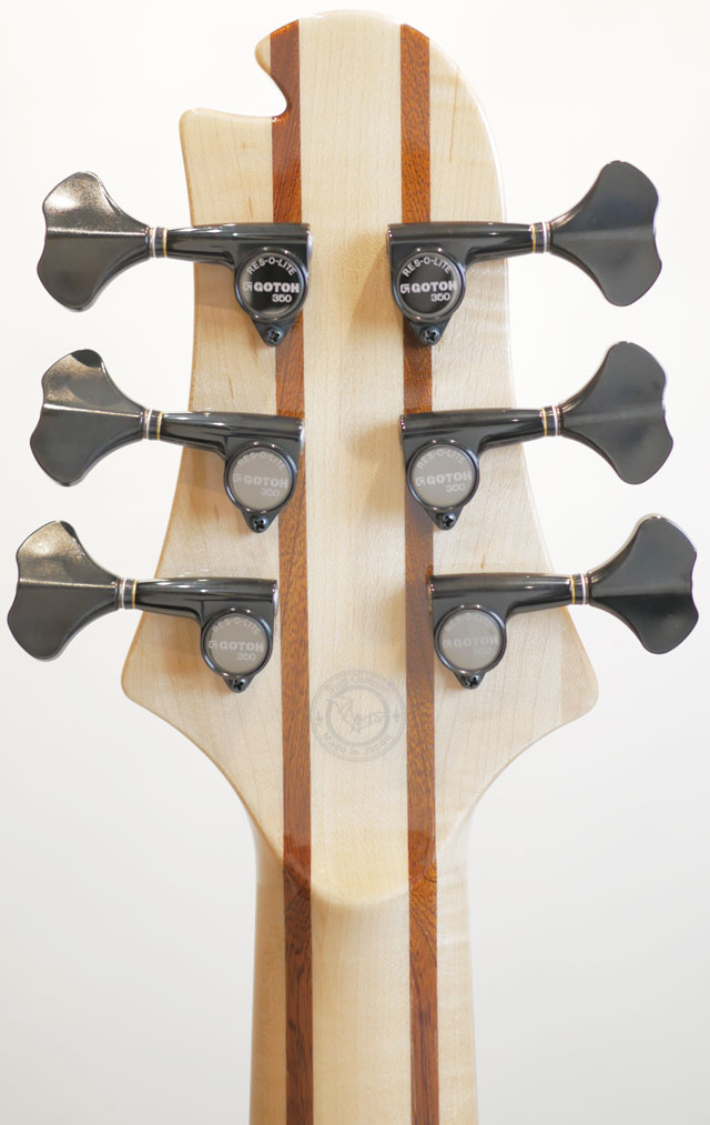 この度入荷したモデルは6弦パッシブモデルになります。再生音階の幅広い6弦モデルですが、各ポジション安定したトーンを奏でるポテンシャルの高さは流石です。プリアンプを搭載してしまえばある程度の補正を手元で行えますが、パッシブ仕様ながら補正の必要性を感じさせない完成度の高い多弦ベースです。ブランド自身がパッシブに強い拘りを持っている事も頷けます。