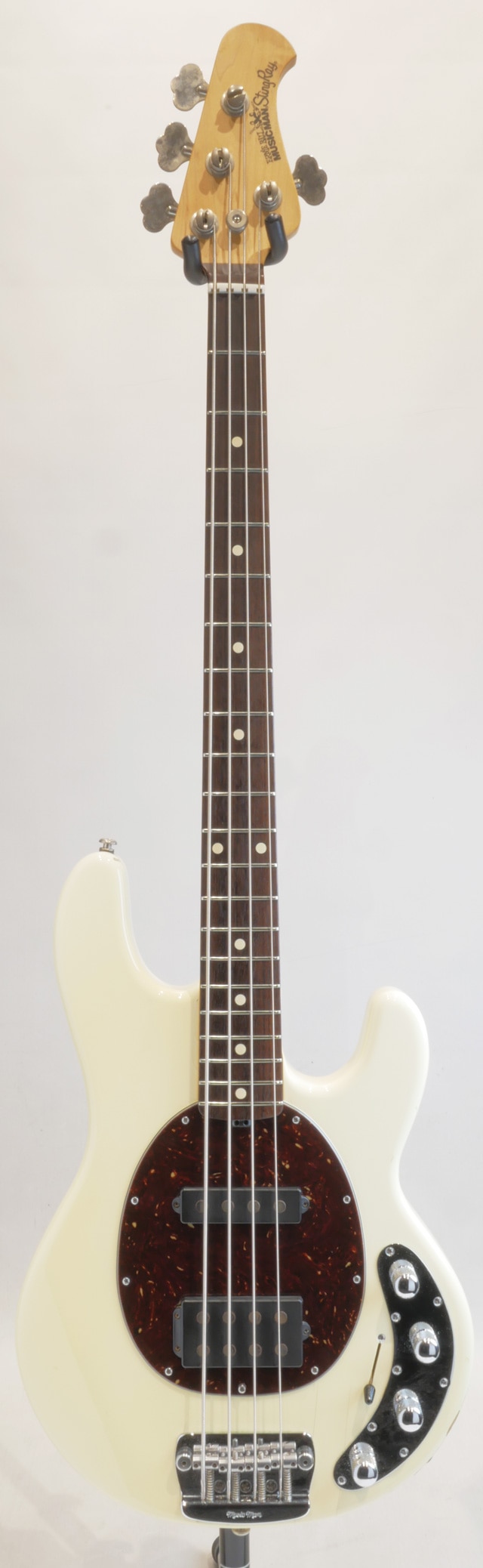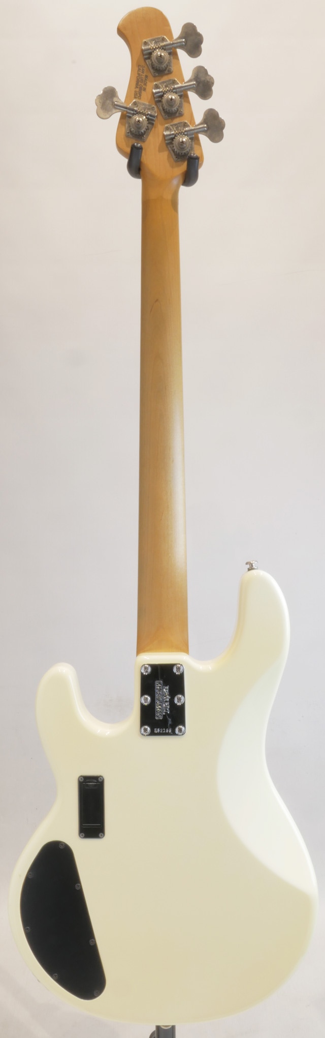 アッシュボディ、6点留めボルトオン構造のメイプルネックにローズ指板。オリジナルピックアップをHSレイアウトにてマウント、オリジナルプリアンプ+ピックアップセレクターを搭載。ミュージックマンらしいパワフルなスティングレイサウンドはもちろん、フロントピックアップだけにすればよりローに厚みを持ったブーミーなサウンドも鳴らせるので汎用性も兼ね備えた楽器となっております。