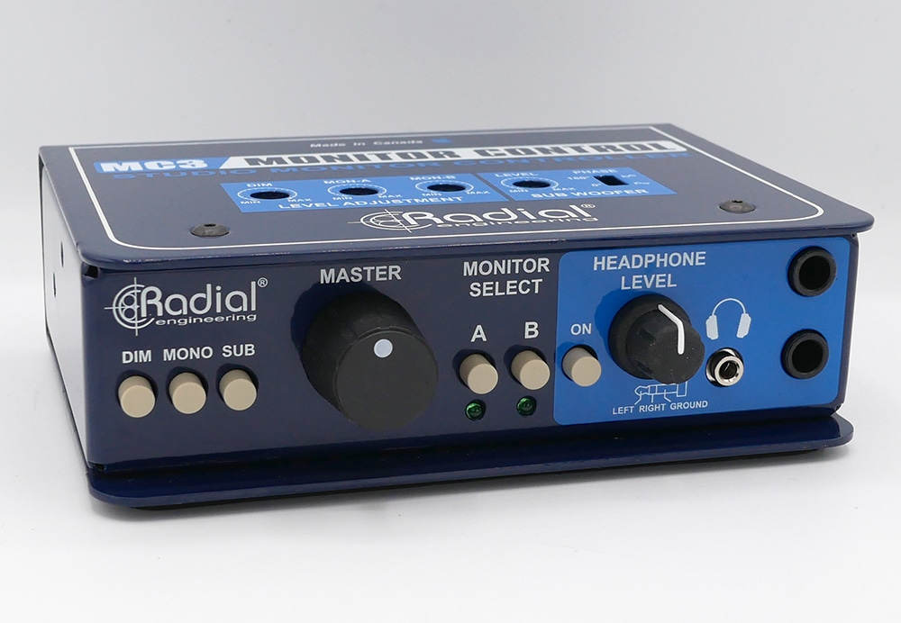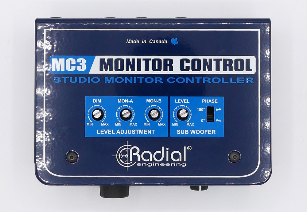 Radial MC3はスピーカー切替、サブウーファー統合、モノチェック、ヘッドホンモニタリングなどに対応可能な、シンプルでありながら強力なモニタリングツールです。