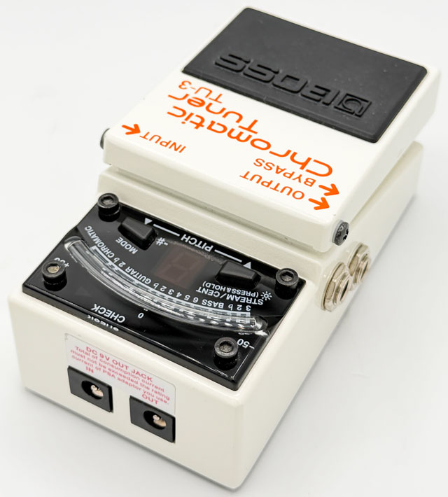 OUTPUT端子に接続すると事でオンと同時に信号を自動的にミュートになりますので、LIVE時のMC中などにチューニングをするときに非常に便利な機能となっております。また、BYPASS端子に接続すれば音を出しながらのチューニングが可能ですので環境に合わせてご使用ください。