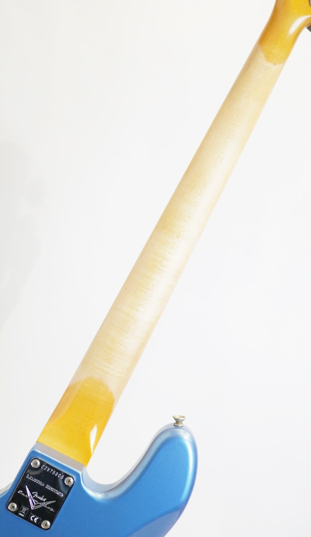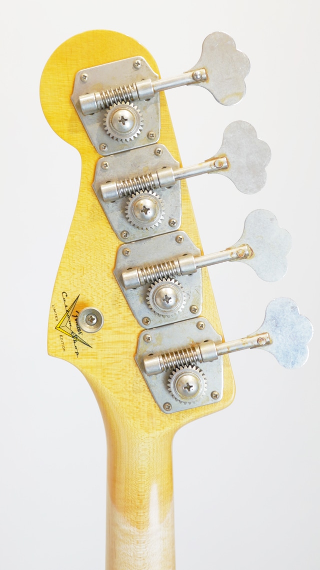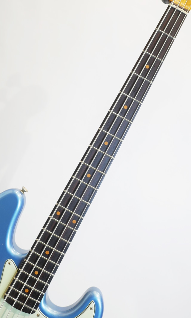 アルダーボディ、クォーターソーンにて木取りされたメイプルネック/ラウンド貼りのローズ指板。HW VINT J-BASSピックアップをセットでマウント。ピックガードはミントグリーンになります。64年の基本スペックにて構成されたリミテッドモデル。レイクプラッシッドブルーが良い雰囲気に仕上がっております。ジャーニーマンレリックが施される事でビンテージライクなテイストが強い印象の個体です。