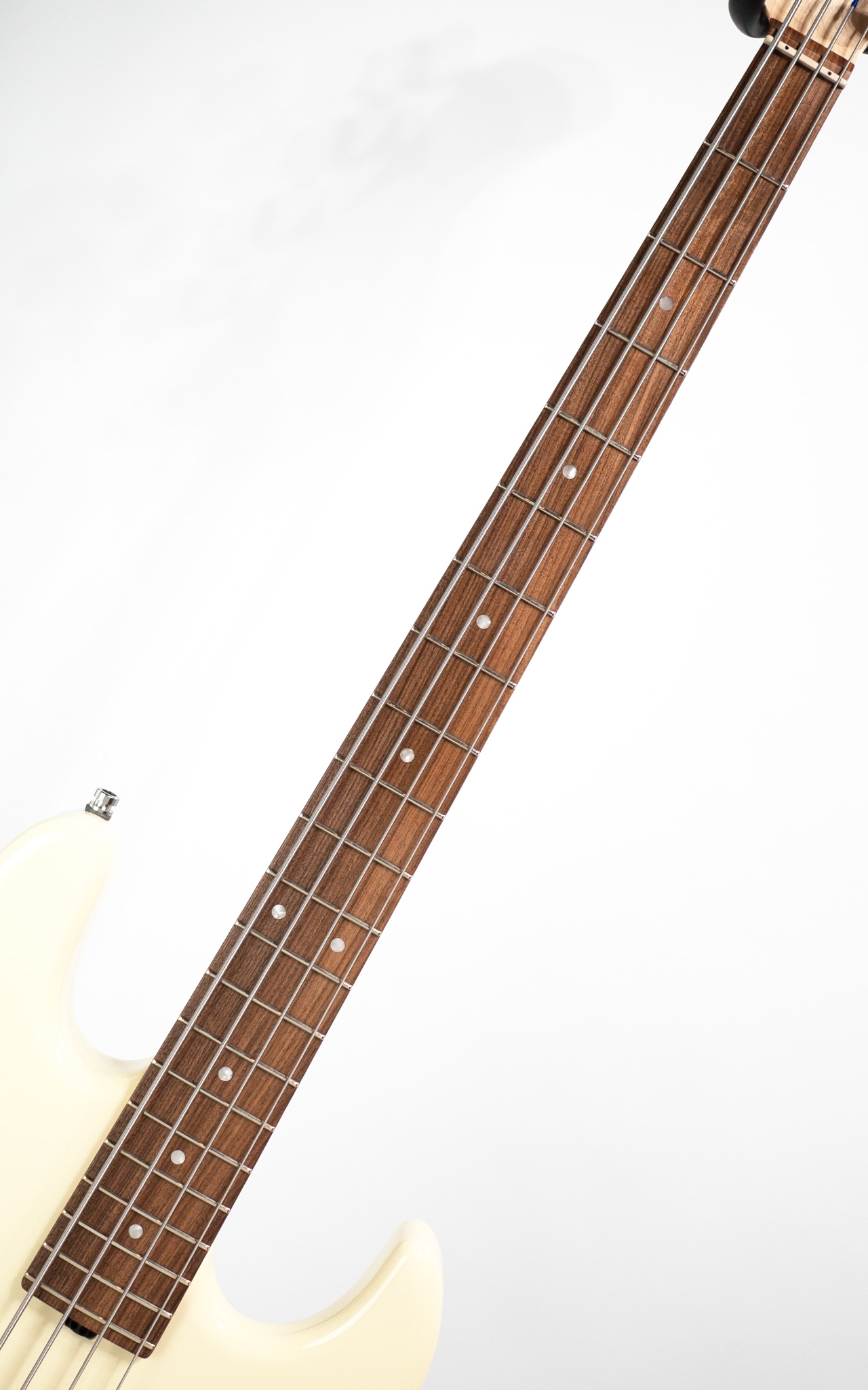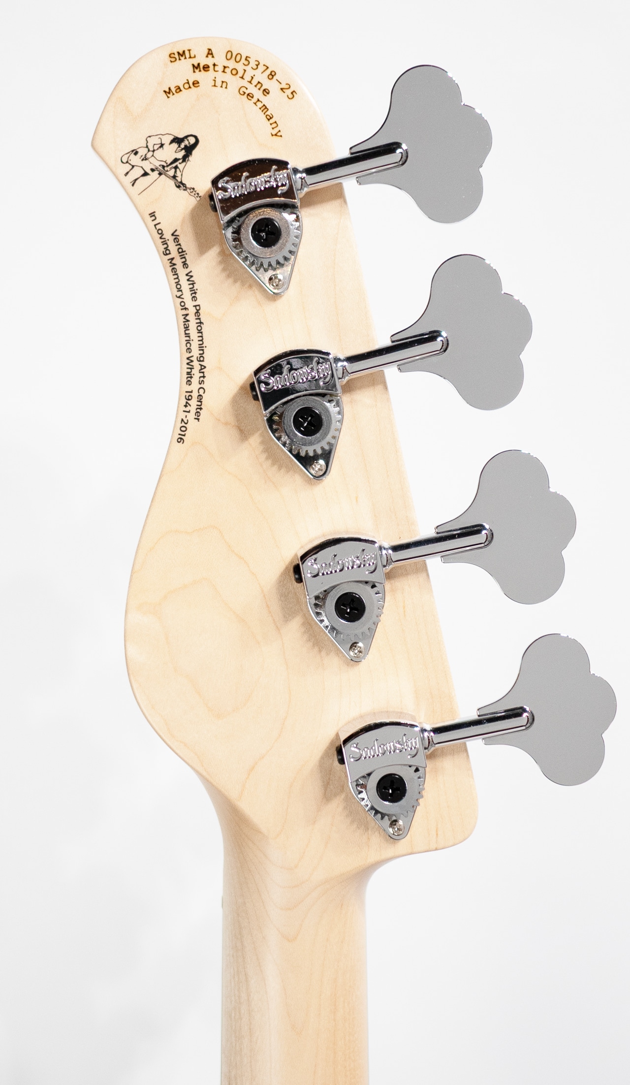 本機は、”Earth, Wind & Fire / アース・ウィンド・アンド・ファイアー”のベーシスト”Verdine White(ヴァーダイン・ホワイト)”仕様です。アルダーボディ、メイプルネック&モラド指板、トラディショナルなJBモデルよりも若干小振りなディンキーシェイプ(Sleek Undersized J)と言われるボディサイズにノンピックガードの所謂”MS”モデル(スタンダードモデル)を基本としており、オリジナルPJピックアップのコンビネーションが”VJ”モデルよりも中音域のレンジに厚みが与えられておりパンチとキレの良いサウンドが手に入ります。R&B、ファンク、ディスコといったサウンドを代表するバンドのベースプレイヤーのモデルとしておりますが、スペックは至って”Sadowsky”ベーシックですので幅広いジャンルで活躍する”Sadowsky”サウンドの適応力の高さを体感いただける事でしょう。