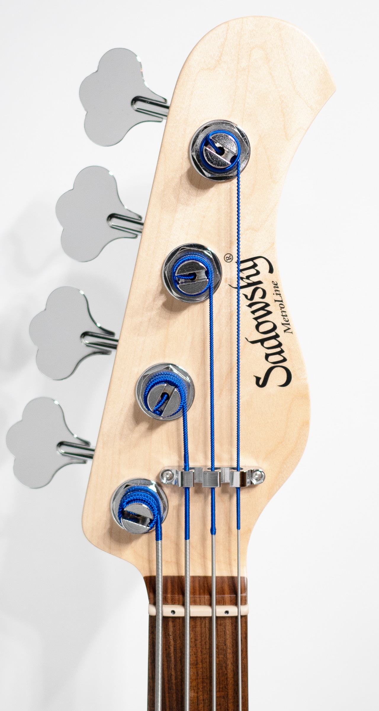 “Sadowsky”の意匠はそのままに製作がされていることが判断出来る仕上がりになりますので、PJピックアップにオリジナルプリアンプの組み合わせはワイドレンジかつクリアなトーンを演出してくれております。クラシックな音色から代名詞的なモダンサウンドまでEQの操作次第では”Sadowsky”らしいサウンドメイクが可能となっており、幅広いシーンで順応するパフォーマンスを有します。各部パーツも同様に最小されており、弦交換をスムースに行えるクイックリリース機構のブリッジ、プレイヤーのタッチに合わせ緻密な高さが調整可能なナット(Just-A-Nut III)、軽量な小型ペグ、バッテリー交換やメンテナンスへのアクセスを高めたバックプレートなどを備えます。