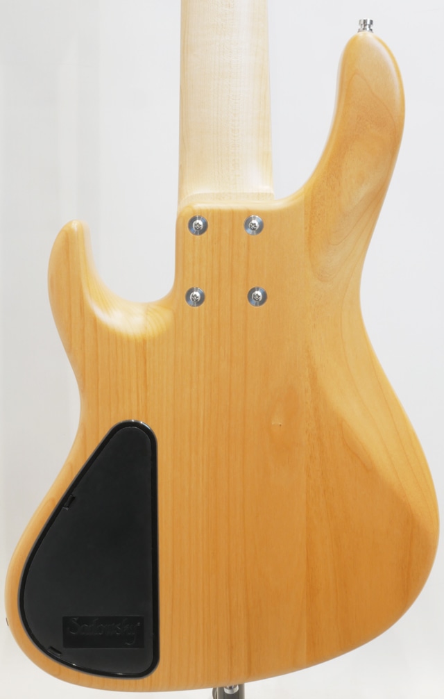 中低域のふくよかな鳴りを備えたアルダーボディのモデルになりますので、アッシュ材モデルのスピーディーで音粒のタイトな立ち上がりに比べて、腰の据わったサウンドが特徴的なトーンキャラクターになります。加えてモラド指板の特徴も組み合わさりやや重心の低いアタック感を持ち合わせます。NYCモデルでご存じの方も多いチェンバードボディ構造により軽量な3.7kg弱のウェイトを持ち、緻密なセッティングによるスマートでレスポンスの良い”Sadowsky”の鳴りと弾き心地はそのままに、高いプレイアビリティとメンテナンス性を備えた仕上がりとなっております。