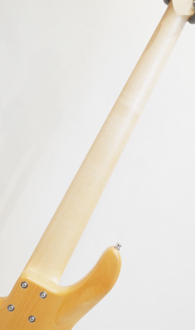当機は、中空構造のチェンバード加工が施されたアルダーボディ、メイプルネック&モラド指板、当24フレット仕様ではネック仕様によるハイポジションでの操作性を考慮したボディカッタウェイが用いられており独特なフォルムを形成しています。