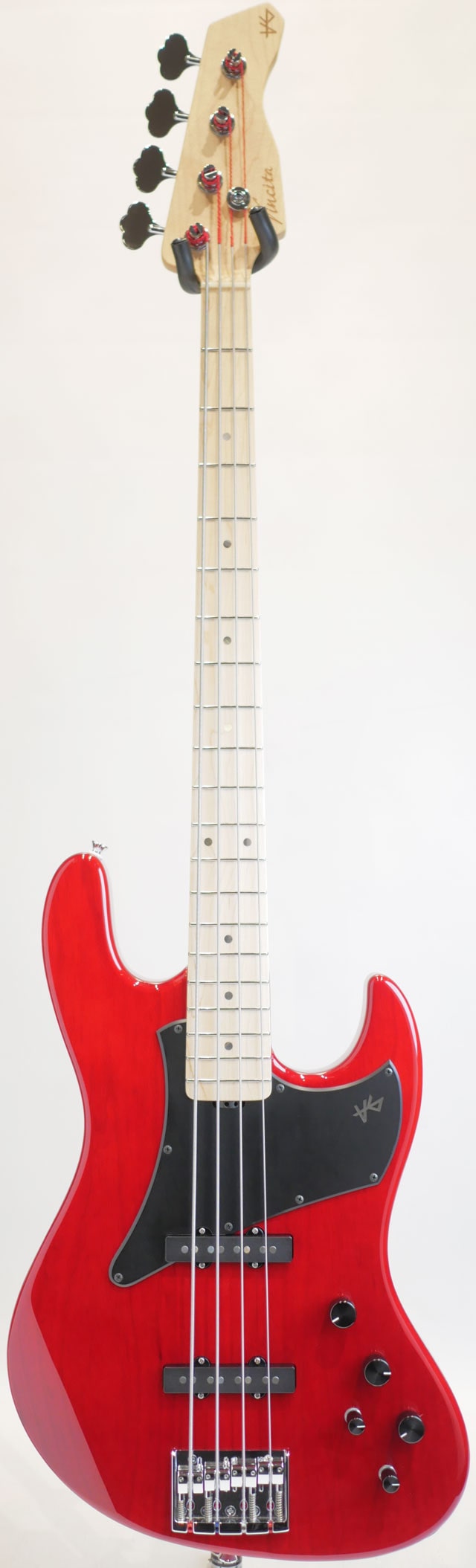 本シリーズのVersatilita(ヴェルサティリタ)は設計から組み込みまで、熟練の職人によって1本1本丁寧に仕上げられています。ボディにはアッシュ材を使用し他社製品のJBタイプと比較して小ぶりサイズのディンキーシェイプを採用。メイプルネック&メイプル指板の本機は手に負担のかかりにくい細くスリムなネックシェイプとなっており、ボディ・ネック共に演奏性・取り回しの良さを考慮されたスペックになっております。また”V”の字をイメージして制作された特徴的なルックスのピックガードはスラップ時の演奏性を考慮し少し厚めに設計。そのためスラップ時に指が入りすぎてしまうといったストレスもかなり軽減されるかと存じます。