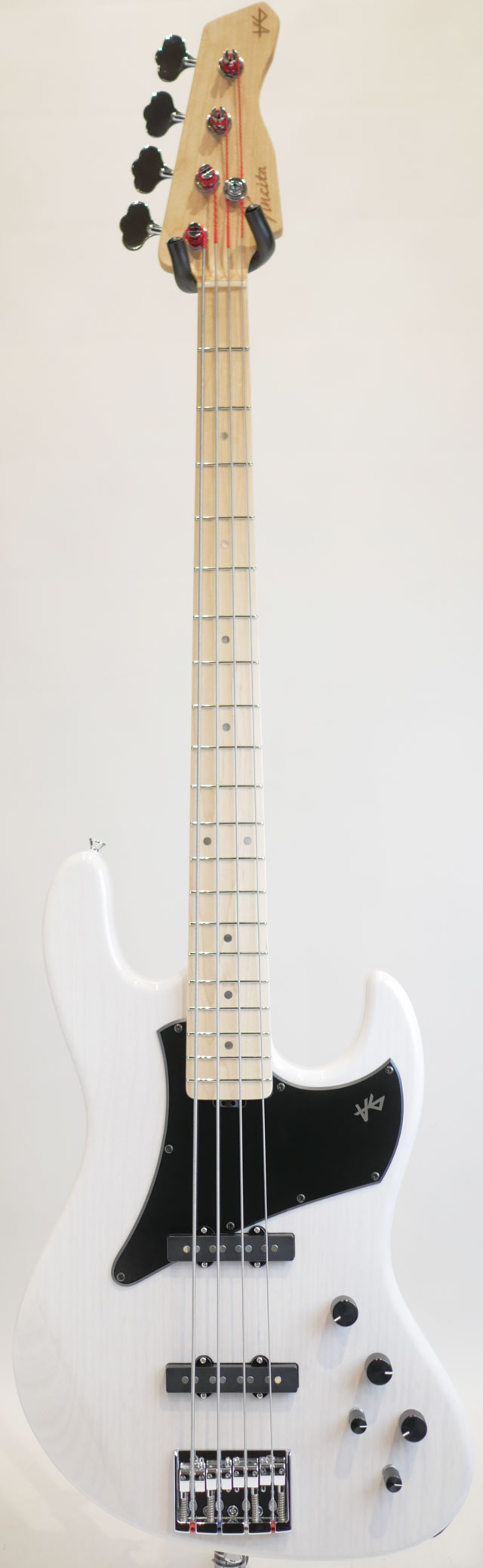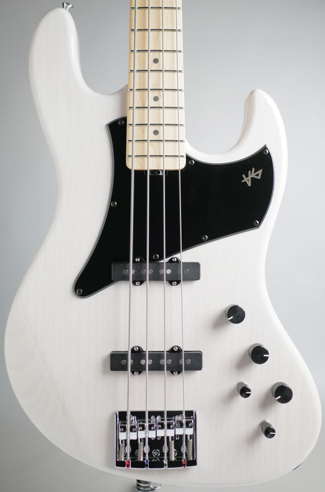 様々なジャンルのスペシャリスト達によって製作されるキクタニミュージックのオリジナルブランド「Vincita」が入荷いたしました!拘りと気合が感じられる1本です。 数多くの有名ブランドの代理店を担当し、まもなく創業100周年を迎えようとしているキクタニミュージックが2024年10月に長野県塩尻市に自社工場を開設しキクタニオリジナルブランドの楽器を製作するという新たな挑戦が始まりました。その初発となるのが本製品の”Vincita (ヴィンシタ)”です 本シリーズのVersatilita(ヴェルサティリタ)は設計から組み込みまで、熟練の職人によって1本1本丁寧に仕上げられています。ボディにはアッシュ材を使用し他社製品のJBタイプと比較して小ぶりサイズのディンキーシェイプを採用。メイプルネック&メイプル指板の本機は手に負担のかかりにくい細くスリムなネックシェイプとなっており、ボディ・ネック共に演奏性・取り回しの良さを考慮されたスペックになっております。また”V”の字をイメージして制作された特徴的なルックスのピックガードはスラップ時の演奏性を考慮し少し厚めに設計。そのためスラップ時に指が入りすぎてしまうといったストレスもかなり軽減されるかと存じます。 ネックのジョイントプレートには3㎜とチタンプレートを採用。0.1㎜単位で厚みを変えてみる等の度重なる試行錯誤を経て制作されたオリジナルのジョイントプレートは、突き抜けるような豊かなサスティーンとローエンドを演出してくれます。 ピックアップには長年にわたり培ってきた確かな知識と技術を持つ刈谷 稔氏(KARIYA-PICKUPS)によって製造される、楽器の持つ良さを最大限に引き出せるように製作されたVersatilitàオリジナルのピックアップ「Presto」を搭載。アッシュ&メイプル材の組み合わせ特有の太く芯のある低域に立ち上がりの速さとアタック感を体感できるようになっております。 本機最大の特徴ともいえるプリアンプには、国産ハンドメイドエフェクターブランドYukiのオリジナルプリアンプ「月夜見 -tsukuyomi-」が搭載!ドンシャリになりすぎないドッシリとした低域に、タッチニュアンス・ピッキングをより正確にアウトプットしてくれる今まで体感したことのないようなプリアンプになっております。このプリアンプが楽器と非常にマッチしており、ベースサウンドをより前に押し出しバンドアンサンブルでも埋もれることなく存在感をしっかりと演出します。 一般的なアクティブタイプの楽器とは違い、Vincitaはパッシブモードを基本としており、トーンノブを引っ張ることでアクティブモードに切り替わります。アウトボードエフェクターのように“サウンドをプラスする”感覚で使用するといったエフェクターブランドならではの面白い仕様になっております。もちろん常にアクティブモードでご使用頂いても問題はございません。 Vincita製品の塗装を手がけていただいているのは、長野県塩尻市に本社を構える老舗塗装メーカー・株式会社三泰(SANTAI)です。1920年の創業以来、100年以上にわたり木工塗装の技術を磨き続け、現在ではエレキギターの塗装・製造において国内屈指の実績を誇る存在となっています。アッシュ材の杢目をしっかりと活かし綺麗に仕上げられた塗装はまさに職人技となっております。 楽器の製品クオリティ・サウンド共に申し分ない新進気鋭のキクタニミュージックオリジナルのブランド「Vincita」 本シリーズは楽器を製作するにあたって沢山のスペシャリストが制作に携わっておりこのシリーズに対するキクタニミュージックの熱量が伝わってきます。入荷時にロトサウンドの弦が張られているのも代理店ならではのポイントだと思います。 音楽ジャンル、奏法問わず様々な用途で使用できるパワーのある楽器をお探しだった方におすすめの製品となっております。 Body:Ash 2P Neck:Maple Fingerboard:Maple Fingerboard Radius:250R Nut Width:38mm Nut:Oiled Bone Bridge:GOTOH 404BO-4 Machineheads:GOTOH GB11W Fret:JESCAR #55090 Nickel Pickup:Presto JB Set Control:1Vol, 1Bal, 1Tone(Push/Pul Preamp ON/OFF SW), Treble/Bass Preamp:YUKI × Vincita ON-BOARD PREAMP tsukuyomi Finish:Urethane Finish Scale:864mm(34inch)