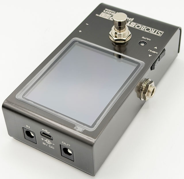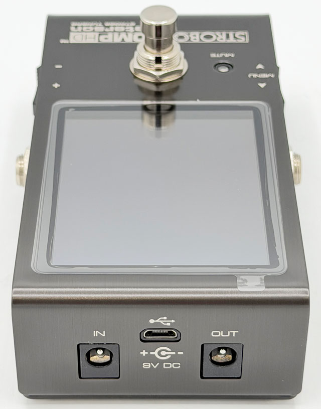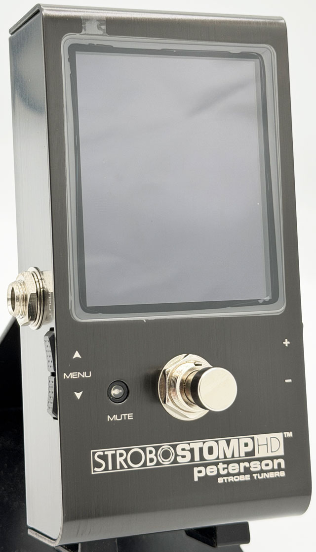 コンパクトなサイズにPeterson最大級の画面を搭載したチューナー・ペダルです。高精細なディスプレイは、ストロボならではの0.1セント単位のチューニングを素早く行え、色の変更もできます。出力はトゥルー・バイパスとバッファーを切り替えられるので、好みやセットアップに応じて使い分けることも可能です。