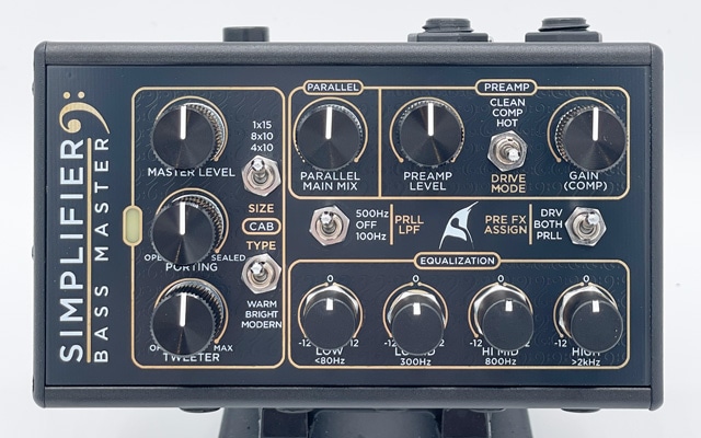 「Simplifier Bass Station」に比べて各セクションが分かりやすく配置され、新たに加わった「DRIVE MODE」がアンプのキャラクター決めになる操作感で「CLEAN」が”SVT”の様な印象、COMPとHOTが”B15”系の厚みのあるサウンドの方向へ設定できます。4バンドEQになったことでより多くの楽器がアプローチが容易になり、パッシブベース、アクティブベース問わずアンプライクなサウンドをこのコンパクトな筐体で鳴らせます。ライブでもレコーディングでも重宝する接続方法の選択肢をチョイス出来、柔軟で幅広いアイデアでご使用いただけるでしょう。