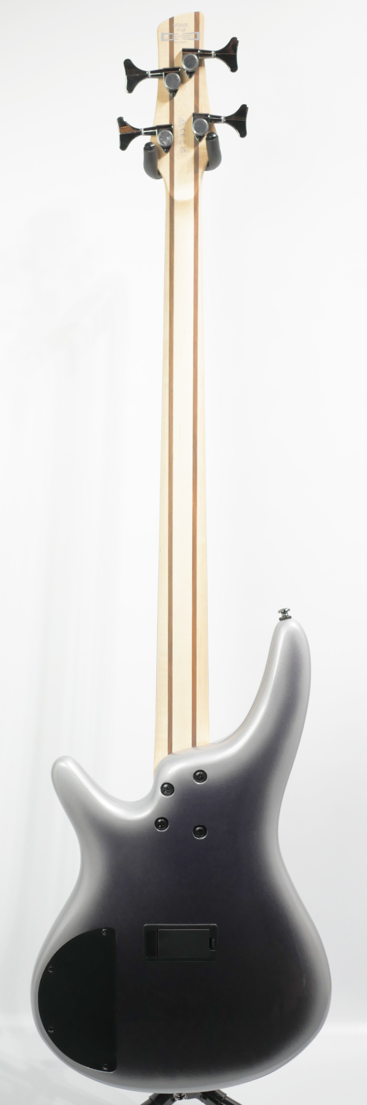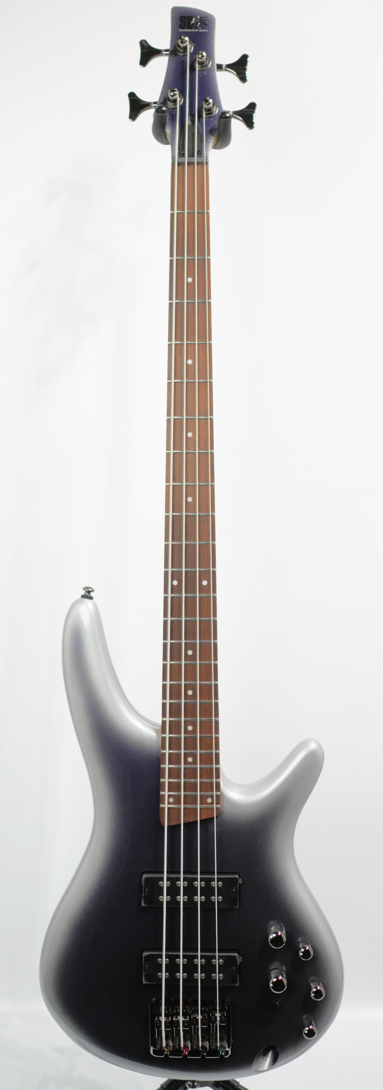 薄身でコンパクトなボディにスリムなネック、スムースな操作性に安定した低音でマイナーチェンジを繰り返しながら長年に渡り支持されているSRシリーズきってのコストパフォーマンスモデル”SR300E”です。 重心の低いトーンが持ち味で低域~中域のふくよかな響きが持ち味のオクメ材をSR独自の「しなやかな曲線とコンパクトかつ軽量」をコンセプトとした3次元アーチド・ボディに、メイプル材と硬質で知られるウォルナット材を貼り合わせスリムなデザインながら剛性を高めた反り耐性を持つ5ピースネックをジョイント、指板のジャトバ材はローズウッド材に似た特性を持ちネックの持つ弾力とオープンな鳴りを引き締め中低域が太いアタックレンジを演出、オリジナルのピックアップとプリアンプが太く纏まったサウンドを3バンドEQが幅広くダイナミックに送り出してくれます。 また本機の注目機能として、搭載されている「3-way Power Tap switch」が音抜けの良い輪郭とアタック感を持つシングルコイルサウンドから、迫力ある低域送り出すハムバッカーサウンドに加え、パワータップモードでシングルコイルサウンドにハムバッカーのファットな低域を与える独自性の高い機能を持ちます。 そのスマートなデザインとフィット感で高い人気を誇る”SR300E”は、若年層から小柄な体格のプレイヤーにも扱い易く取り回しの良い1本として幅広いプレイヤーに支持されております。初心者に限らず、アクティブベースを手にしてみたいプレイヤーや軽量級のベースをお探しのプレイヤーにもおすすめのモデルです。 Condition : NEW Body Wood : Okoume(SR Original 3D Body) Neck Wood : 5pc Maple/Walnut Fingerboard : Jatoba / White dot inlay Fingerboard Radius : 305mm Nut Width : 38mm number of frets : 24 Scale Length : 34”(864mm) Tuning Machines : Original Bridge : Original Accu-cast B120 Bridge(19mm) Pickups : PowerSpan Dual Coil pickup(Passive) Preamp : Ibanez Custom Electronics 3-band EQ w/3-way Power Tap switch Controls : Volume, Balancer, Bass, Middle, Treble, 3-way Power Tap switch Case:Original Soft Case