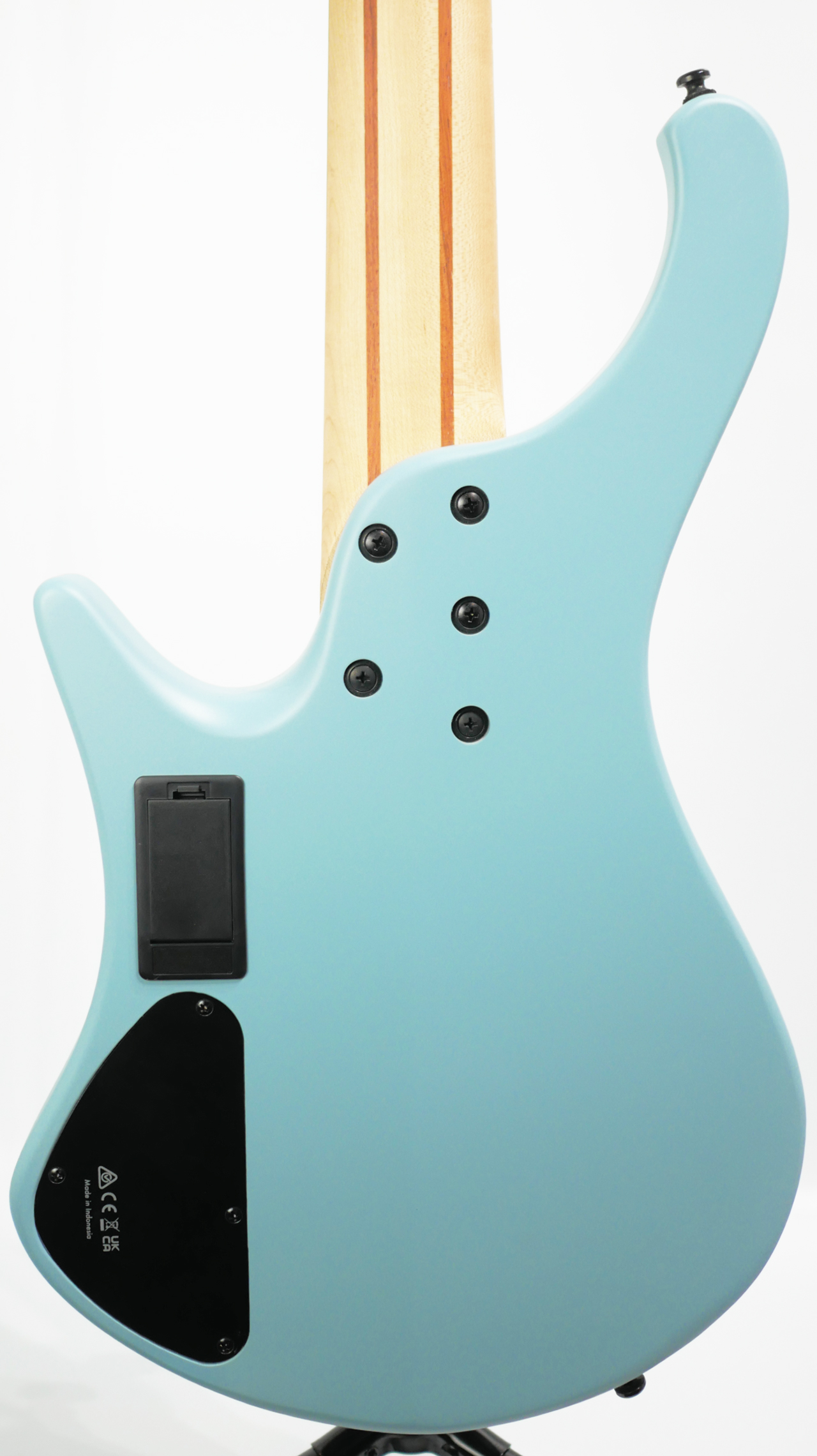 ネックはメイプル材と硬質なウォルナット材を貼り合わせることで剛性を高めた5ピースネックをジョイント、”SR”5弦モデルと同等に45mmのナット幅を採用しており、弦間ピッチ18mmとベーシックな5弦ベースモデルの弾き心地との乖離を感じさせず、フラットな曲線を描く指板のジャトバ材はネックの持つ弾力とオープンな鳴りを引き締め中低域が太いアタックレンジを演出いたします。