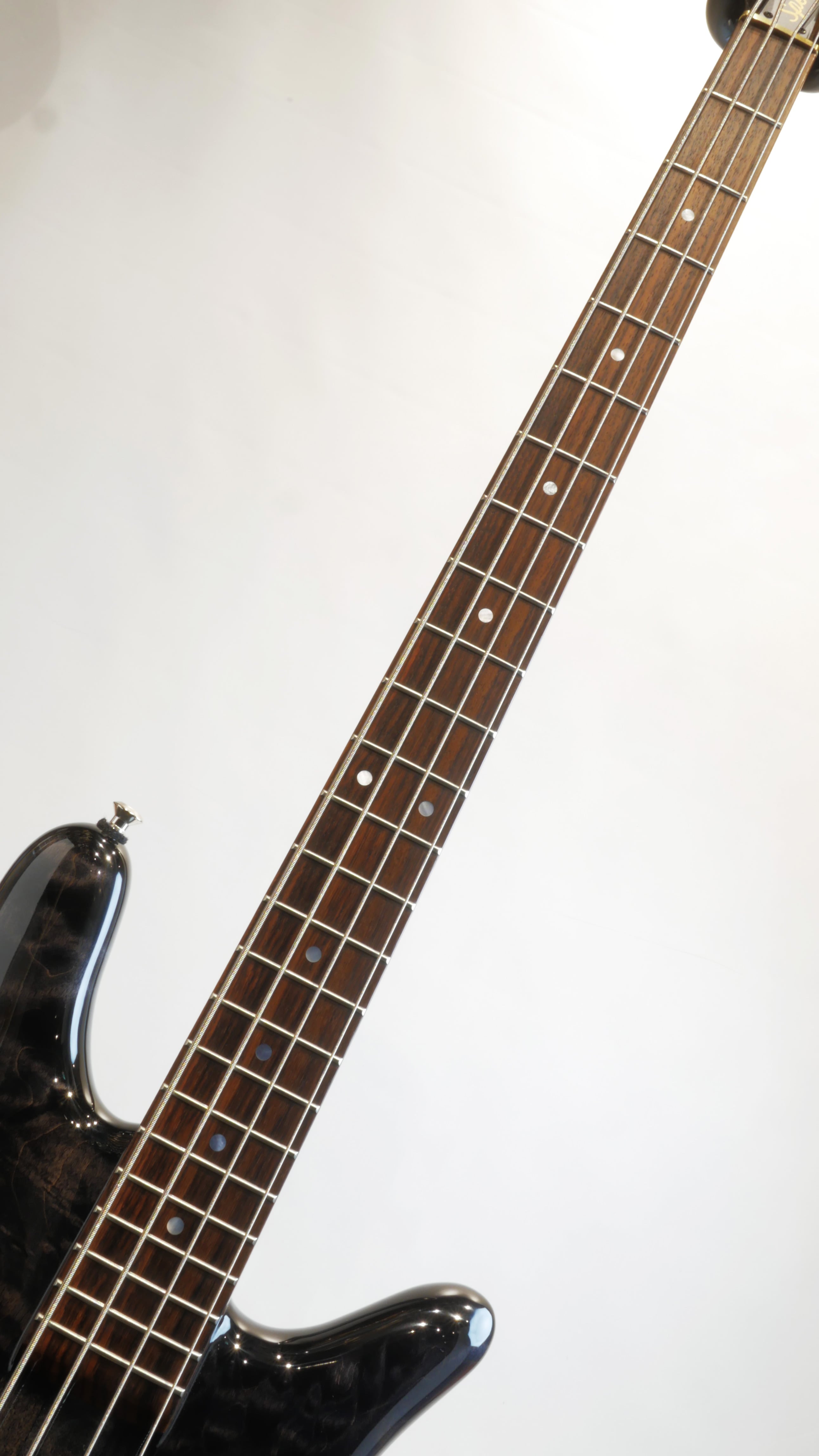ハンドピックしたマスターグレードのソリッドキルトメイプルウィングボディ。スルー構造のメイプル3pcネック/ローズ指板。EMGピックアップをJJレイアウトにてマウント。ピックアップはSPECTOR"HAZ"プリアンプを搭載。ブリッジは日本国内で奇跡的に入手したデッドストックのバダス1ブリッジを持ち込み搭載頂きました。ブリッジはデッドストックと言えど経年による若干の擦れキズ等は見受けられますが、スペクターのスタッフが驚く程良好なコンディションをキープ致しております。