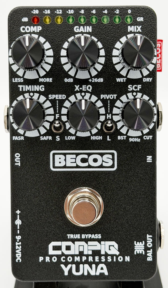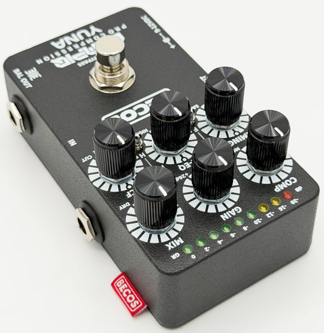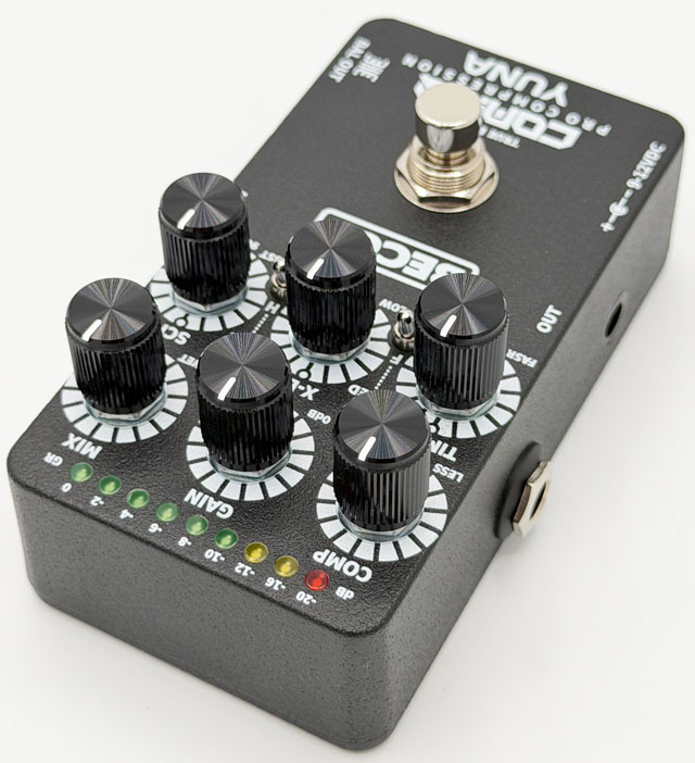 音瘦せを一切感じさせない太くナチュラルなコンプレッションに、繋ぐだけでもサウンド全体を持ち上げてくれるのでプリアンプ要因としても扱えるとても汎用性に優れたコンプレッサーぺダルとなっております。