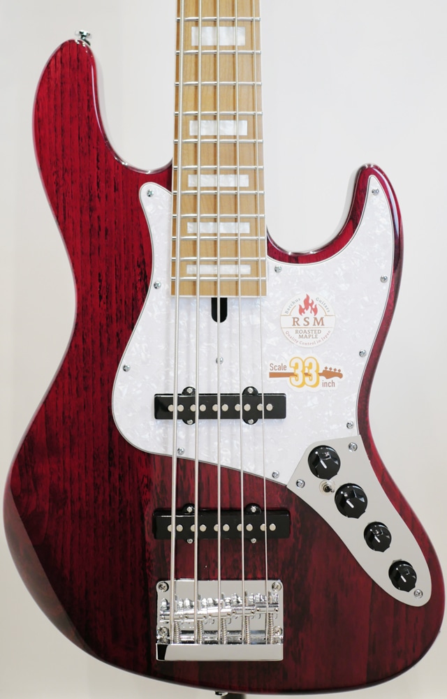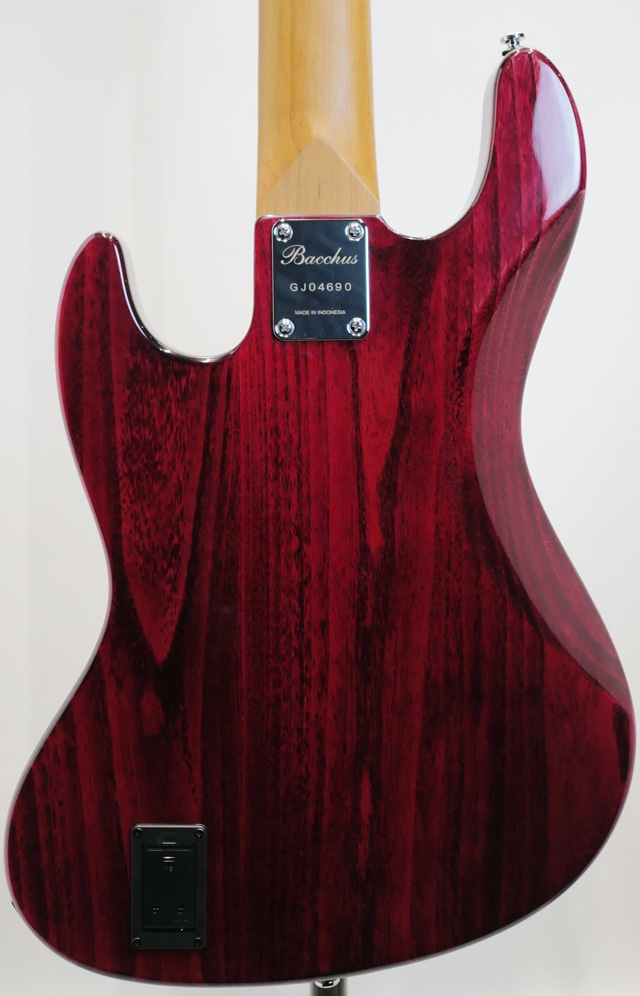 【数量限定アウトレット特価品】 Bacchus Global Series Handmadeシリーズの仕様を海外工場にて生産する事でハイコストパフォーマンスを実現しているBacchusの定番ライン。そのお求めやすい価格帯と確かなクオリティで人気の高いシリーズです。 本国、飛鳥ファクトリーにて製作される最上位機種”WOODLINE”を基に海外生産されている”WL4-STD”モデルの5弦バージョンとなる当機は、エレキベースの最も一般的なスケールである34インチより1インチ(約2.5㎝)短い33インチスケールと、低域(5弦)の確かな再生と音色の幅を与えるアクティブサーキットが採用されたバリエーションモデルです。フレットの間隔が若干狭くなることにより運指がしやすくなり、弦のテンションが低くなることにより弦が押さえやすくなるといったメリットがあります。手の小さいプレイヤーでも弦を押さえやすく、よりテクニカルな演奏スタイルにチャレンジが可能です。また、ミディアムスケール(32インチ)やショートスケール(30インチ)と比較するとサウンドに与える影響は抑えられ、ロングスケールとの差が極めて少ないプレイアビリティ持っており、演奏するジャンルや音楽性を選ばずに使用することができます。 当機ではアッシュ材を使用したボディとなり、STDモデルに比べワイドレンジになったサウンドがお楽しみ頂けます。ボディは「WL-STD」と同様の一般的なJBモデルよりも少しスマートなサイズとなるディンキーシェイプが採用され、取り回しの良いボディサイズが実現しております。ネック&指板には、高温で加熱処理して材の中の水分や油分を一定数量に揮発させることにより剛性を高め、豊かな生鳴りと経年変化したビンテージのような小慣れたトーンを生み出す、高級機種で採用される事の多いローステッドメイプル材が使用されております。ボディサイズは「WL-STD」と同様の一般的なJBモデルよりも少しスマートなサイズとなり取り回しの良いディンキーシェイプが採用されております。 また、オリジナルアクティブサーキットも搭載され、パッシブモデルでは再生され難いとされるローB(5弦)の低いレンジのサウンドをしっかりと前面に明瞭に押し出す役割を担ってくれており、実用的なサウンドを作り出します。 アッシュ材の小振りなベースながらもネック材の特徴もあり力強い低音を持ち幅広いシチュエーションに対応可能なポテンシャルを持っておりますので、これから5弦ベースにチャレンジされようと思っていた方にもオススメのベースです。 ※こちらはメーカーアウトレット品になります。 ※楽器本体の演奏機能に支障のある商品ではございません。 ※外観の傷、塗装不良、色焼け、各部パーツの褪色やくすみは保証対象外になります。 ※商品画像はサンプルです。木目や色合いは個体毎に異なります。 Body : Ash Neck : Roasted Maple Fingerboard : Roasted Maple Nut : Graphtech TUSQ XL Bridge : Vintage Type Machineheads : Open Gear Type Pickup : Original JB set Preamp : Bacchus Original 2Band EQ Control : Vol,Balancer,Treble,Bass, Preamp ON/OFF SW Scale : 838mm(33inch) Fingerboard Radius : 400R Width at Nut : 46.0mm Case:オリジナルソフトケース