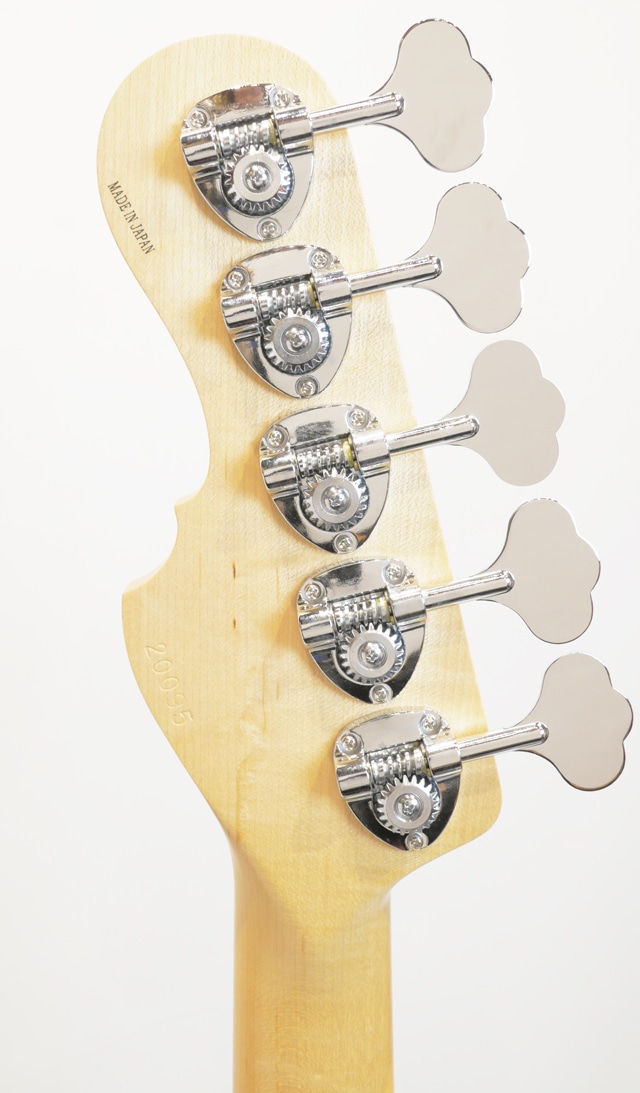 最大の特徴となるボディはエッジに丸みのある面取り加工を施すことにより、スリムになりがちな24F構造でありながらもトラディショナルな雰囲気を残し、ネックジョイント裏のコンターやホーン部分の切り込み等、ハイフレットの演奏性を高めるための加工が行われております。一般的な24フレットのベースはカッタウェイの開口部が広いことによりボディとネックの接合面積が小さくなる場合が多く、この構造により20フレットや21フレットのベースと比較するとやや芯の細いサウンドになる傾向があり、本モデルでは接合面積を広くとる「ラージジョイント」を採用することにより、適度に太く、トラディショナルなJBスタイルのベースに近いキャラクターのトーンを実現しています。