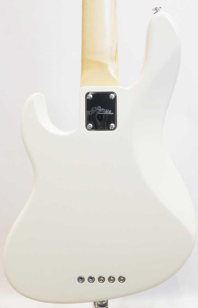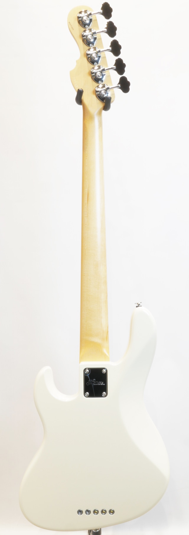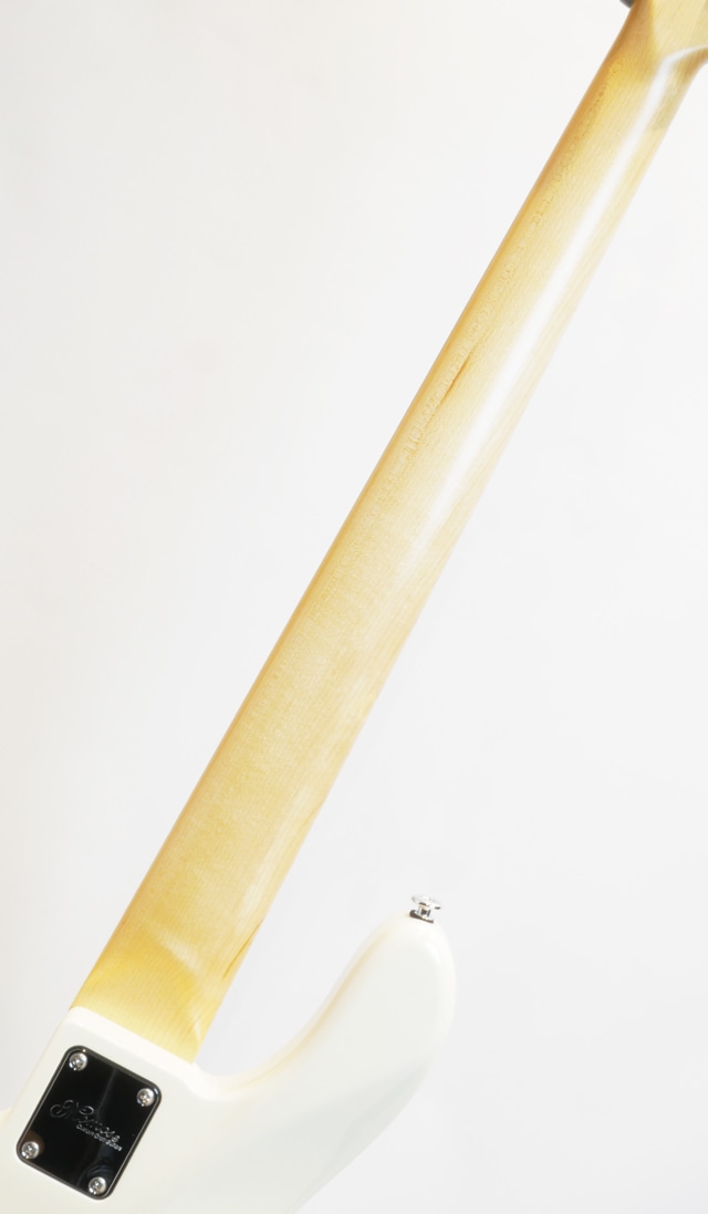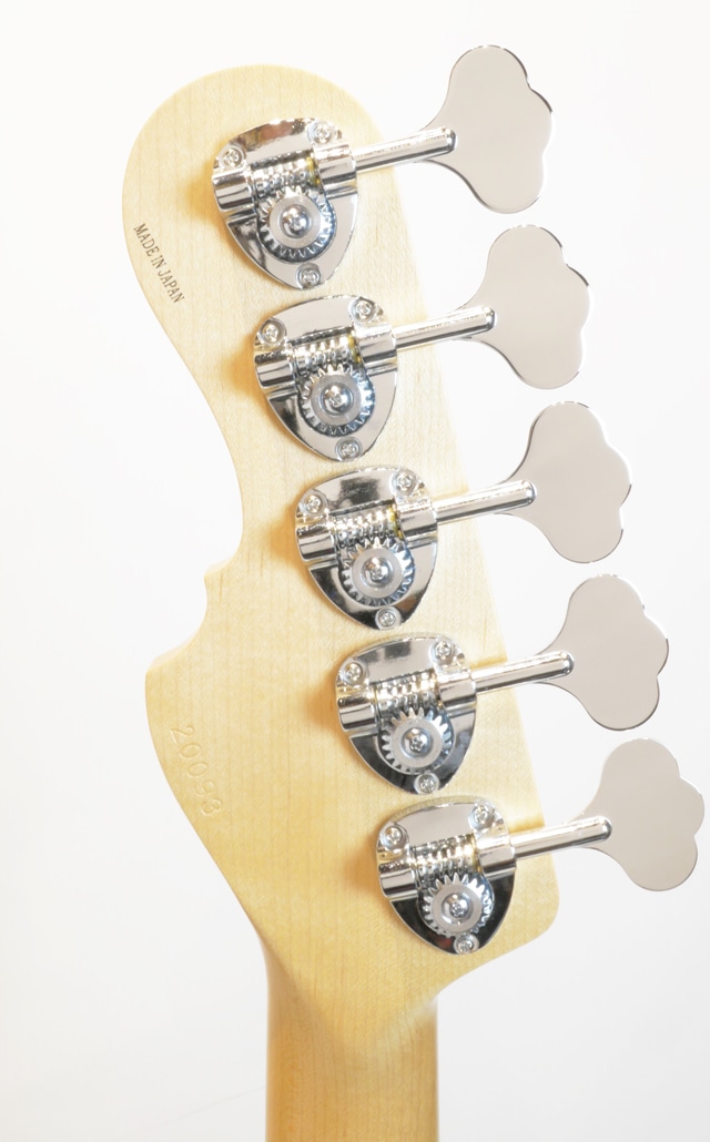最大の特徴となるボディはエッジに丸みのある面取り加工を施すことにより、スリムになりがちな24F構造でありながらもトラディショナルな雰囲気を残し、ネックジョイント裏のコンターやホーン部分の切り込み等、ハイフレットの演奏性を高めるための加工が行われております。一般的な24フレットのベースはカッタウェイの開口部が広いことによりボディとネックの接合面積が小さくなる場合が多く、この構造により20フレットや21フレットのベースと比較するとやや芯の細いサウンドになる傾向があり、本モデルでは接合面積を広くとる「ラージジョイント」を採用することにより、適度に太く、トラディショナルなJBスタイルのベースに近いキャラクターのトーンを実現しています。