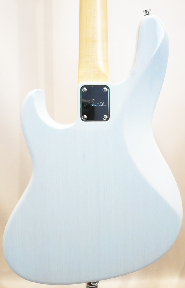 70’sスタイル代表する特徴的な約1cmブリッジ寄りに配置されたリアピックアップポジションとアッシュボディが織りなす”604”モデルよりもトレブリーでタイトなサウンドが持ち味の”704”モデル。Momoseのきめ細やかな仕上げとディティールにより、ピッキングレスポンスの早いスマートな鳴りと艶のあるしなやかさを備えた中域が心地良く送り出されてまいります。低域から高域までレンジが広く鮮やかにも感じられる印象があり、メイプル指板の特性による弾力と音の歯れの良い押し出しの強さを感じるクリアな中低域が感じられ、70’sライクでありながら現代で求められるパッセージの速さやナチュラルで落ち着きのあるトーンにも対応できるサウンドメイクの幅を持ったベーストーンを出力します。この度のアップデートでダイナミックレンジがさらに広がり、より力強さと繊細さを表現し易くなった懐の深さが体感出来ます。また、ターボスイッチが加わり、ピッキングの力が弱いと感じているプレイヤーにもこれまで以上の力強いベースサウンドが奏でられます。指板面がフラットでサイズアップしたフレットのコンビネーションが左手の収まり易さに加え、スラッププレイでの右手のアプローチにもスムーズさを与えてくれており、より多くの奏法に対して柔軟さを増した仕上がりとなっております。