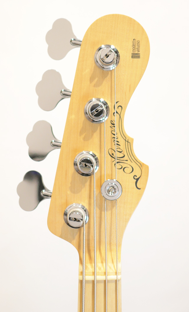 Momose Modern Virtuoso Seriesは「ビンテージの雰囲気とサウンドを持った24フレットベース」をテーマに、20フレットや21フレットのベースの見た目やサウンドのキャラクターを保ったまま24フレットまで音域を拡張させるために、細部にわたってデザインを検討しながら1から新しいボディシェイプを開発したMomose職人による設計が施されたモデルです。