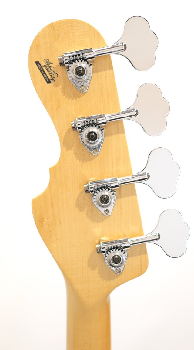 最大の特徴となるボディはエッジに丸みのある面取り加工を施すことにより、スリムになりがちな24F構造でありながらもトラディショナルな雰囲気を残し、ネックジョイント裏のコンターやホーン部分の切り込み等、ハイフレットの演奏性を高めるための加工が行われております。一般的な24フレットのベースはカッタウェイの開口部が広いことによりボディとネックの接合面積が小さくなる場合が多く、この構造により20フレットや21フレットのベースと比較するとやや芯の細いサウンドになる傾向があり、本モデルでは接合面積を広くとる「ラージジョイント」を採用することにより、適度に太く、トラディショナルなJBスタイルのベースに近いキャラクターのトーンを実現しています。