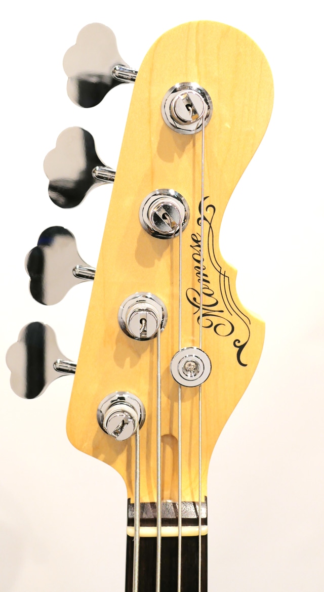 ビンテージスタイルでは王道のウッドマテリアルが中低域を鳴り良く豊かに送り出してくれており、Momoseのきめ細やかな仕上げとディティールにより、音の芯がはっきりと太く感じ取れる中低域を備えたしなやかなピッキングレスポンスと、弾き込まれたような濁りの少ない明瞭感のよりビンテージライクな雰囲気を持ったベーストーンを出力します。この度のアップデートでダイナミックレンジがさらに広がり、より力強さと繊細さを表現し易くなった懐の深さが体感出来ます。また、ターボスイッチが加わり、ピッキングの力が弱いと感じているプレイヤーにもこれまで以上の力強いベースサウンドが奏でられます。指板面がフラットでサイズアップしたフレットのコンビネーションが左手の収まり易さに加え、スラッププレイでの右手のアプローチにもスムーズさを与えてくれており、より多くの奏法に対して柔軟さを増した仕上がりとなっております。