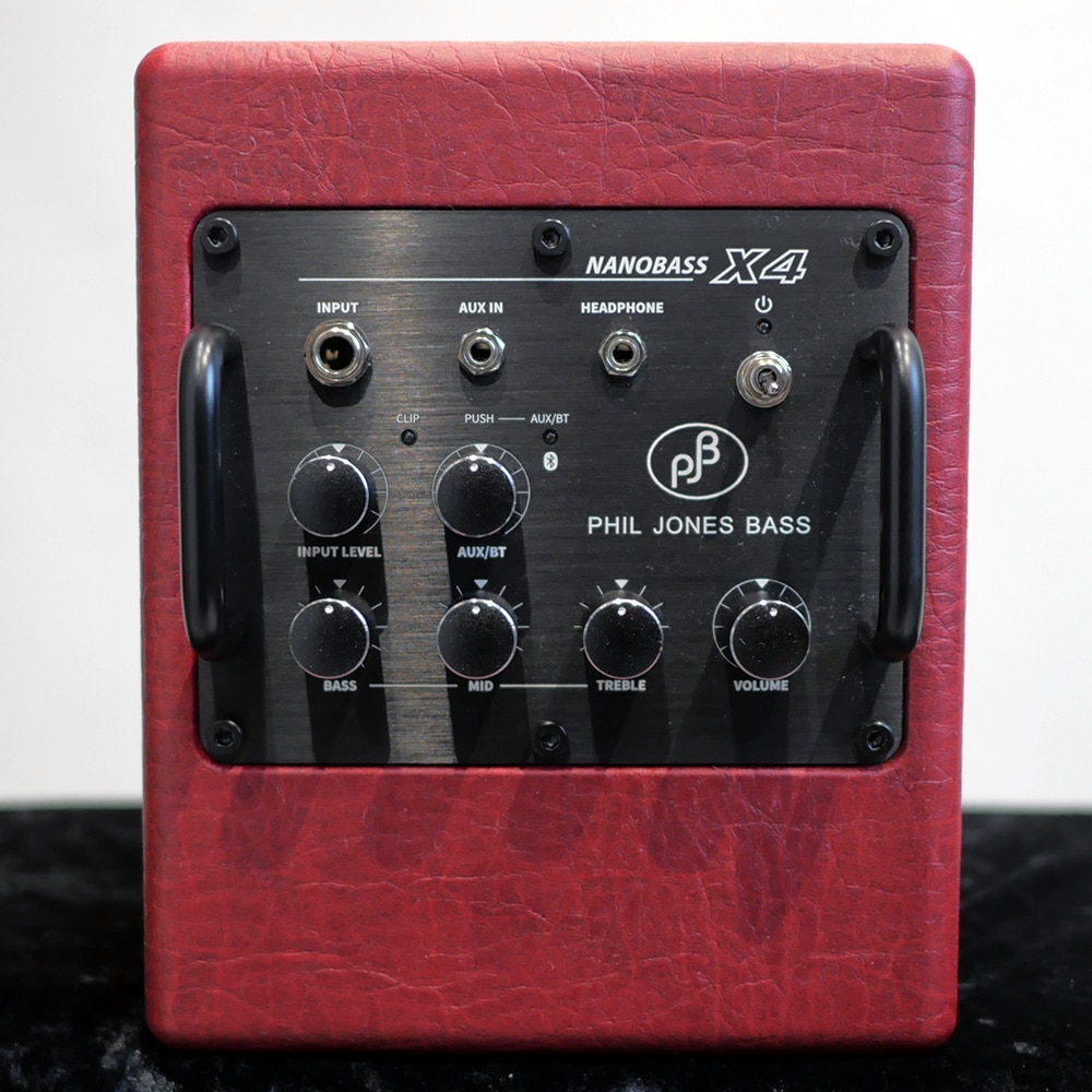 超小型にして驚くべきリアルなベース音が特徴のX4。音を鳴らした瞬間に、PJBならではのスピード感のある切れの良い低音が響きます。その秘密はPJBだけの超高性能4インチスピーカーとパッシプラジエターRALFR(Rectangular Auxiliary Low Frequency Radiator)の組み合わせ。サイズを遥かに超える低音再生能力と、プロ仕様の名に恥じない表現力を持っています。また、PJB初となるBluetoothを搭載し、オーディオスピーカーとしても楽器の表情を生々しく再現。 フラットでワイドレンジな周波数特性を持ち、ベースアンプとしてはもちろん、ギター、キーボードなどマルチに使える画期的な超小型ハイグレードアンプです。 2025年待望の復刻を果たしたX4!モバイルバッテリーでの駆動をしない方におすすめです。 //SPEC// 出力:35W スピーカー:1x PJB ネオパワー 4インチ+RALFRパッシブラジエター 周波数特性:68Hz - 15kHz インプット:3系統(Input、AUX、Bluetooth) アウトプット:ヘッドホンアウト Bluetooth規格:5.0(sbc, aac, aptX, aptX HD対応) コントロール:Input Level、Bass、 Mid、Treble、 AUX/BT Volume、 Master Volume 本体サイズ:160(W) x 200(H) x 197(D)mm 重量:2.4Kg