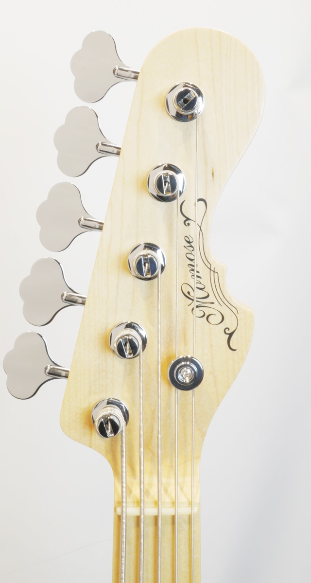 Momose Original Series『MJ』は、トラディショナルなJBスタイルを継承しつつも、Momose独自のブラッシュアップが施されたオリジナルモデルです。一般的なJBタイプと比べ、高音弦側のホーン部の抉りが大きく取られていることによりハイポジションの演奏性が高まるほか、手が大きなプレイヤーの方でもストレス無くハイフレットに向かって駆け上がるプレイが可能になります。また、オーソドックスなプレートジョイントを採用しながらもプレート部分に落とし込み加工を施すことで演奏性をさらに高め、指板サイドには指板と同材を使用したウッドバインディングを採用し滑らかな指板サイドを実現するほか、季節変化や長年の使用でフレットのバリが出てしまう様なトラブルも防止する様、演奏面でビハインドに成り得る箇所に細やかな処置が施されております。