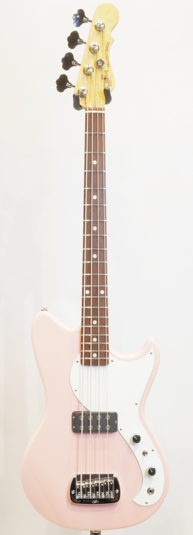 当”Fallout Bass”は、30インチ・ショートスケールを採用したモデル。アルダー材ボディにハードロックメイプル材ネック&カリビアンローズウッド指板のウッドマテリアル。G&Lではお馴染みの特徴的なサドルロック機構が装備されたオリジナルブリッジ、ネックはナット幅41.27mmを持つスリムなCシェイプネックに9 1/2 Rの指板、フレットは押さえ心地の良いミディアムジャンボサイズ、ネック裏のフィニッシュにはサテンフィニッシュが採用されております。