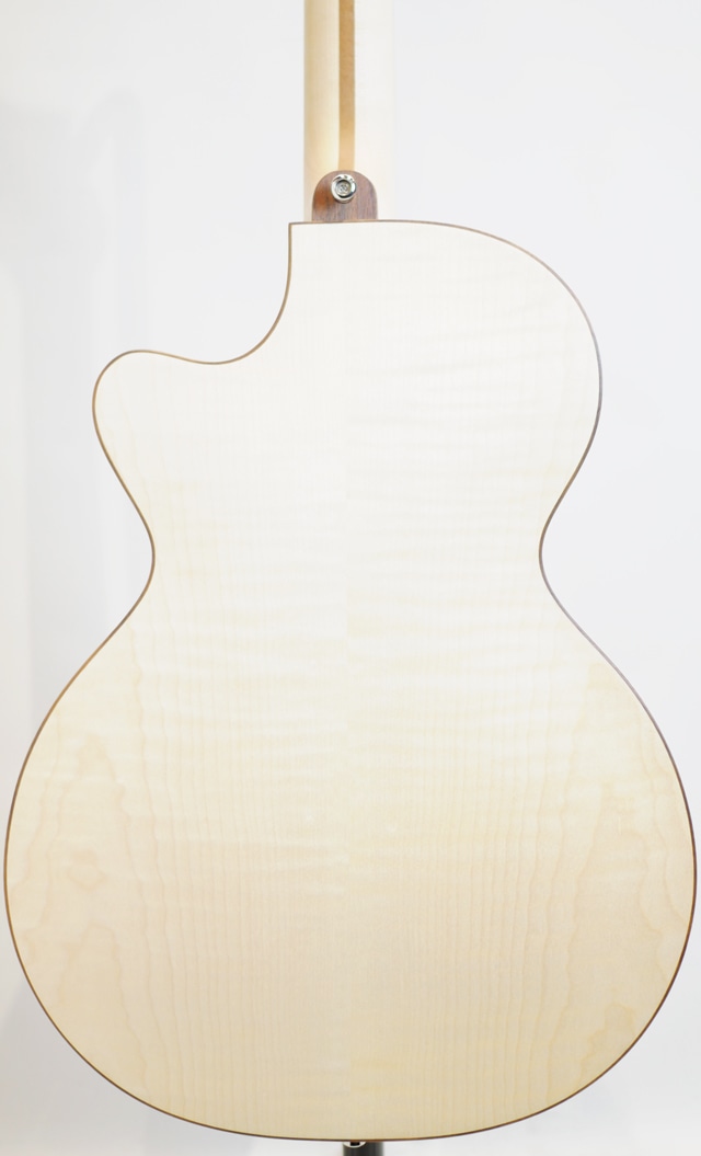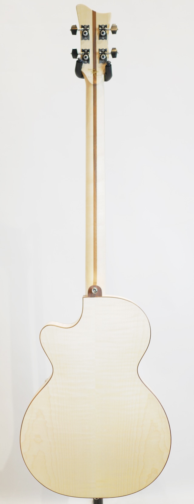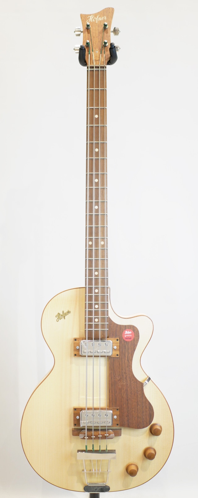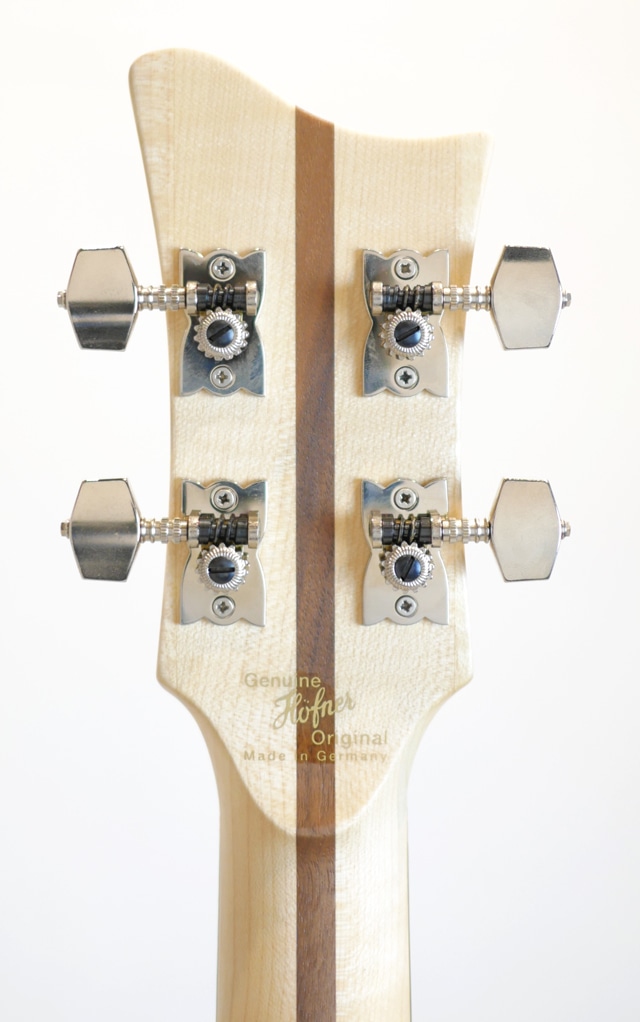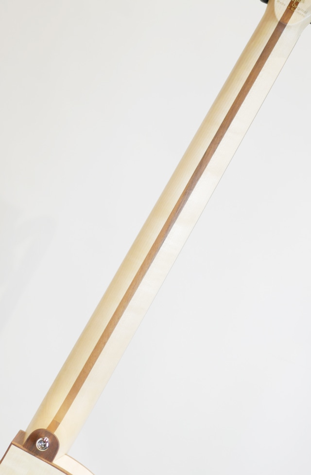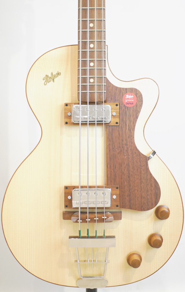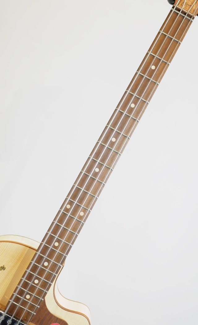 ウッディなルックスが目を惹く個性的なClub Bass。塗装が施されていない様で、手でベースを撫でれば木の質感がモロに伝わってきます。その為大変デリケートで、加工時に付いたと思われるヘコミも見受けられます。恐らく使い込む程に経年により木部が色焼けし、雰囲気抜群なルックスへと昇華して行く事が想定されます。フラットワウンドとの相性は言うまでも無く、ホロウ感抜群のウォームなサウンドを響かせます。塗装がされていない分、音の響きも通常のモデルよりもオープンに鳴っている様に感じます。