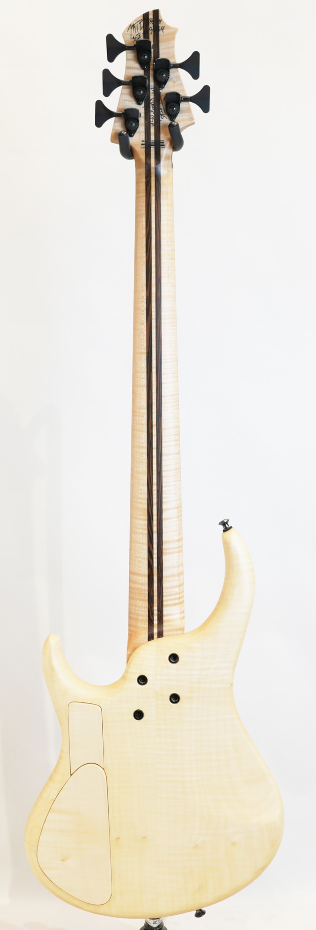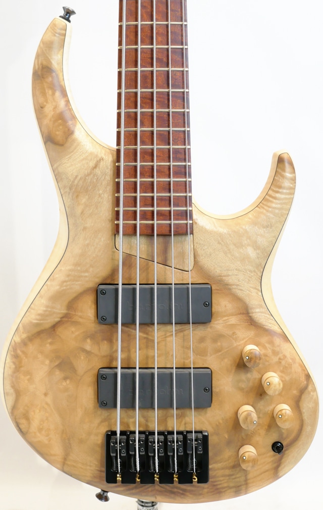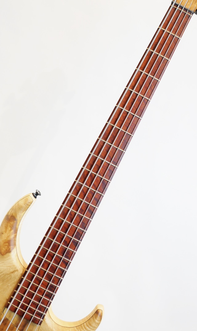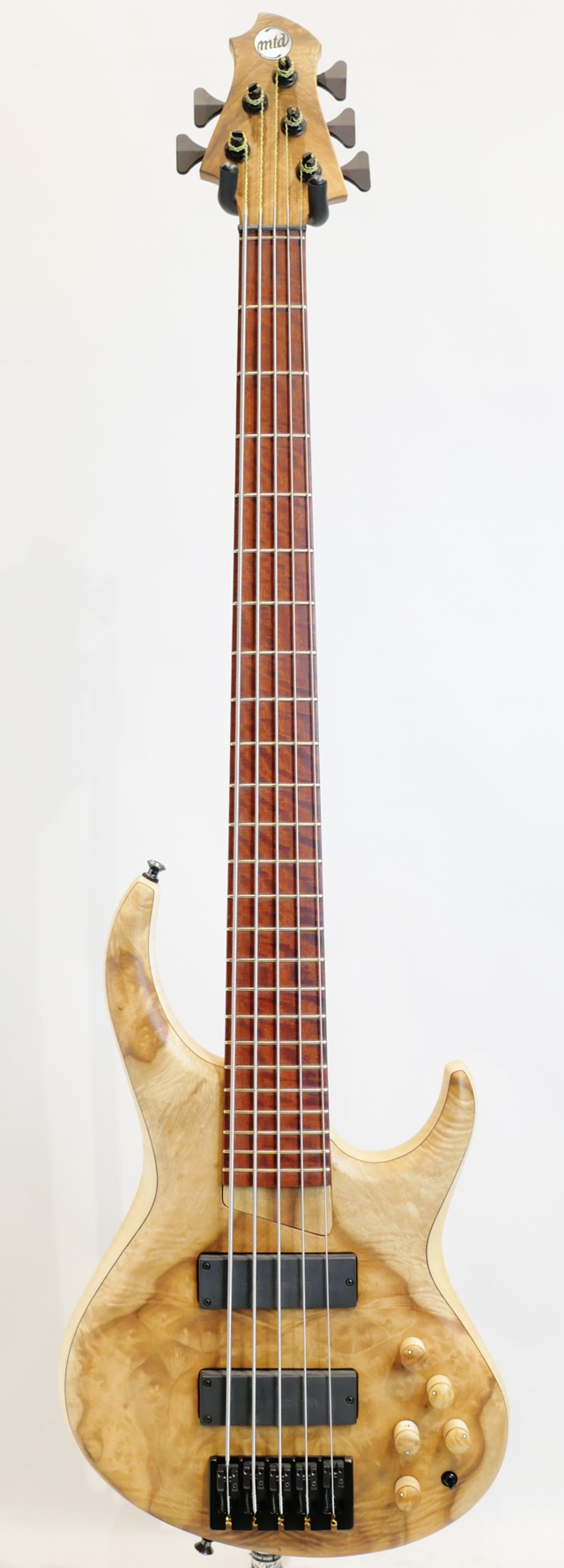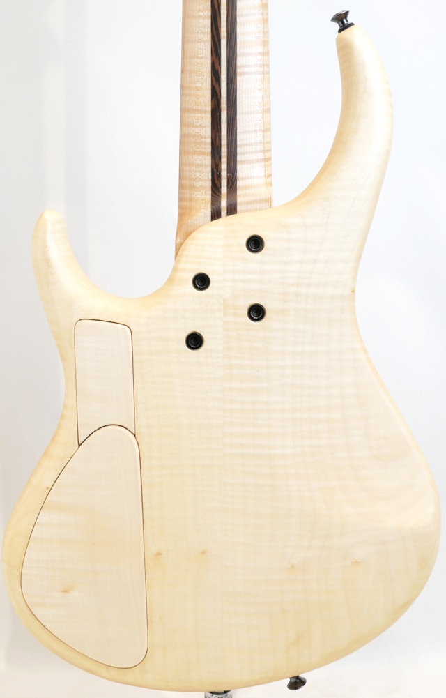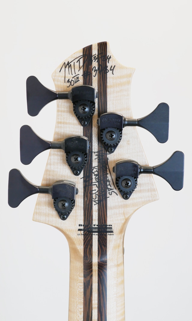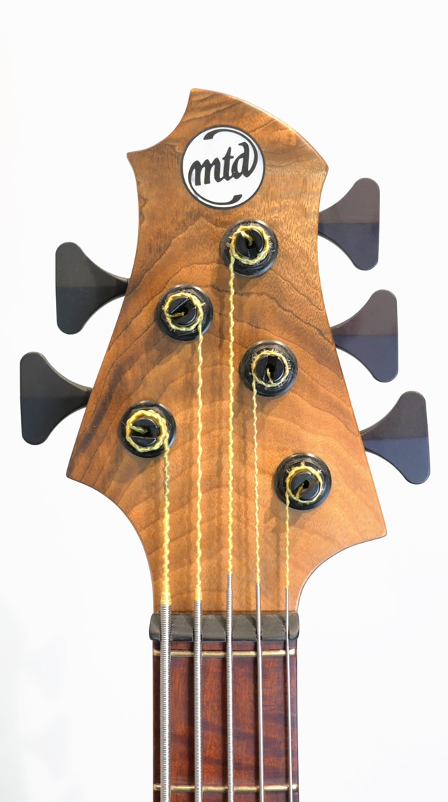 コロナ禍が明け、数年振りに開催されたNAMM SHOW。昨年の春頃にも開催されましたが、Winter Nammとしては今回が久々の開催になります。生産台数の少なさから国内入荷の乏しかったMTD。東京方面には毎年数本の入荷はありましたが、関西圏の入荷は数年振りになります。この度入荷した一本はShow Modelとして相応しいスペックにて構成されており、ボディトップにはPresentation GradeのMyrtleをセレクトしております。Myrtle 10topとFlame Sycamore Backのラミネイトボディ。Flame MapleとWengeの5pcで構成されたボルトオンネック/Bloodwood指板。指板はラッカーコーティングが施されております。ピックアップとプリアンプは御馴染みのBartoliniをセット。MTD十八番スペックをベースにShow Modelとしてグレードアップした一本に仕上がっております。時折Showモデルとして盛りに盛ったスペックで構成された個体を拝見する事もございますが、こちらの個体はMTDの基本スペックを崩さずスペシャリティなスペックにて構成されている事が伺えます。